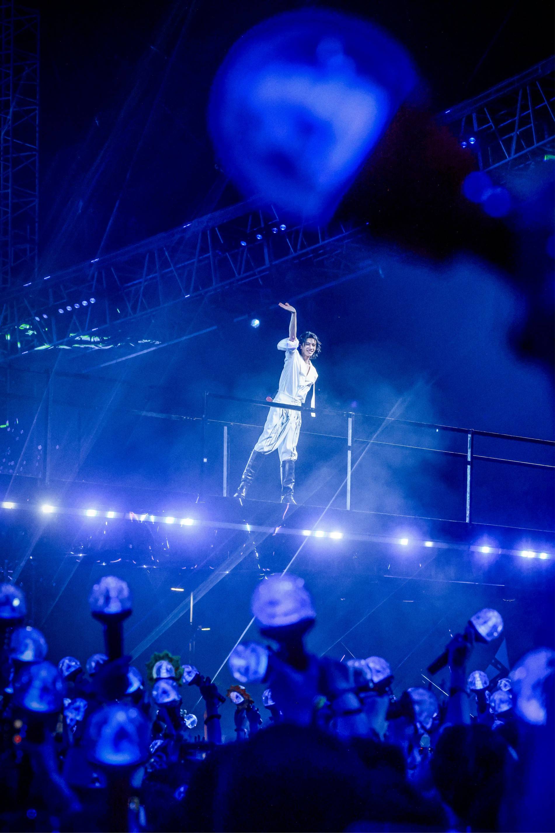 如果说乐园场的夜晚是火星独有的盛大典礼,那么下午场便是一首首灵动的即兴诗。不插电环节里,华晨宇用《飞行模式》《烟火里的尘埃》《名场面》等歌曲燃动了每一位现场听众的心,乐园限定环节“为歌迷过生日”则让现场变得温暖又趣味盎然。当夜幕成为画布,晚上场便拉开了一场极致美学的视听盛宴。在《地球之盐》《神树》的震撼开场中,主舞台以“未来城市”为概念,运用可升降机械结构和全息投影技术,打造出不断变幻的视觉奇观。在华晨宇演绎《好想爱这个世界啊》时,舞台则切换至一个透明的玻璃花房,在这个独立的小小宇宙中,花丛随着华晨宇的歌声被注入了温度与色彩,从素净渐变为斑斓,以极具诗意的视觉语言,温柔回应着歌曲的主题。《忒修斯的船》环节,舞美则直接将一艘10米高、充满哲学隐喻的巨型充气船呈现于舞台上,其庞大的体量伴随着冲击雾,在如梦似幻的特效中带来无与伦比的视觉冲击与心灵震撼。值得一提的是,此次南京站演唱会在“家”舞台两侧新增了T字型升降延展台,极大地拓展了最佳观赏区域,让更多粉丝能近距离感受表演。在《怪诞心理学》、《斗牛》环节中,华晨宇走上延展台与观众沉浸互动,将现场气氛一次次推向高潮。五块巨型屏幕与五个舞台精准配合,360°捕捉现场每一个精彩瞬间。这一切,都完美诠释了华晨宇对粉丝说的那句“只能宠着了”,力求为大家奉上最极致的观演体验。