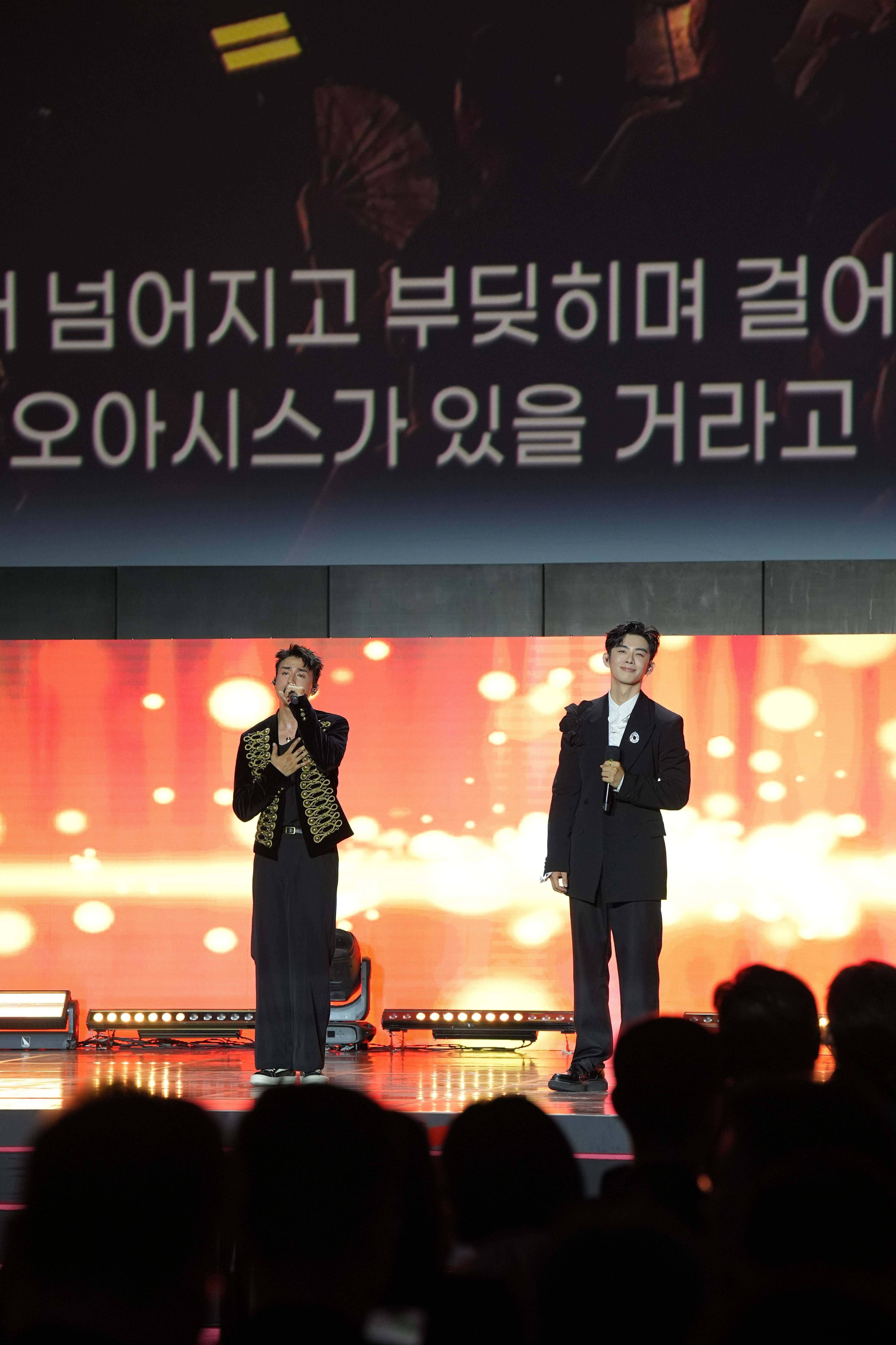 典礼最大亮点之一,是萧子墨与香港男团 MIRROR 成员 Anson Kong 江𤒹生的合唱舞台。两人因 2014 年在韩国并肩作为练习生而结下深厚友谊,十多年来宛如兄弟般互相支持。大会更特别准备了一支 VCR,播出两人当年稚嫩的练习生照片与影像,从艰苦的训练生活,到初次吃韩国麻辣辛拉面被辣到流泪的趣事,充满笑声与感慨。能在 2025 年重回釜山并肩登台,两人都坦言「紧张却满怀感动」,观众更直呼这对「兄弟 CP」是当晚讨论度最高的组合。