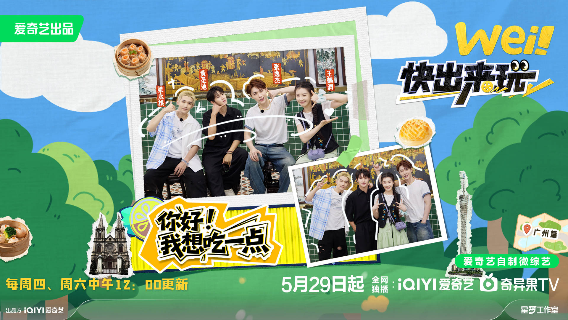 由爱奇艺出品的微综艺《wei!快出来玩》开播,5月29日起每周四和周六中午12点上线播出。节目以“好友相聚共游城市”为核心,围绕广州、武汉、上海三地展开,通过“新潮玩法路线”,挖掘城市的潮流地标、小众秘境与烟火美食,以年轻化视角重构城市叙事。