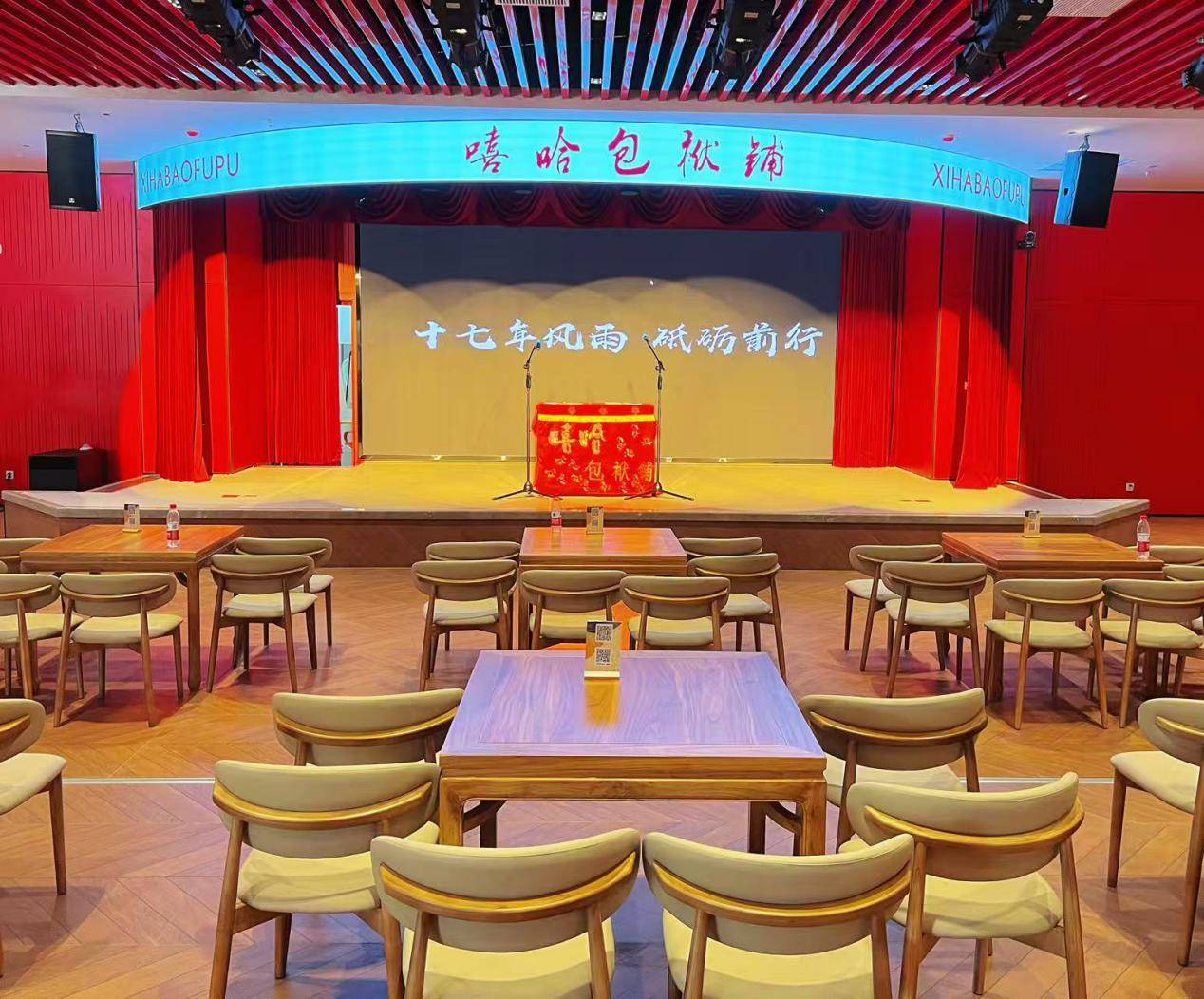 嘻哈包袱铺邯郸道剧场选址优越,位于城市核心文化区域剧场设计独具匠心,巧妙融合了邯郸本地文化符号与嘻哈包袱铺标志性的年轻、潮流基因。约1000平米的演艺空间内,涵盖了相声演出及脱口秀两个专业剧场,配备了高规格的灯光音响设备,营造出沉浸式的视听盛宴。近200个舒适座位以环绕式布局,拉近演员与观众的距离,确保每一份欢笑都能零距离传递。
