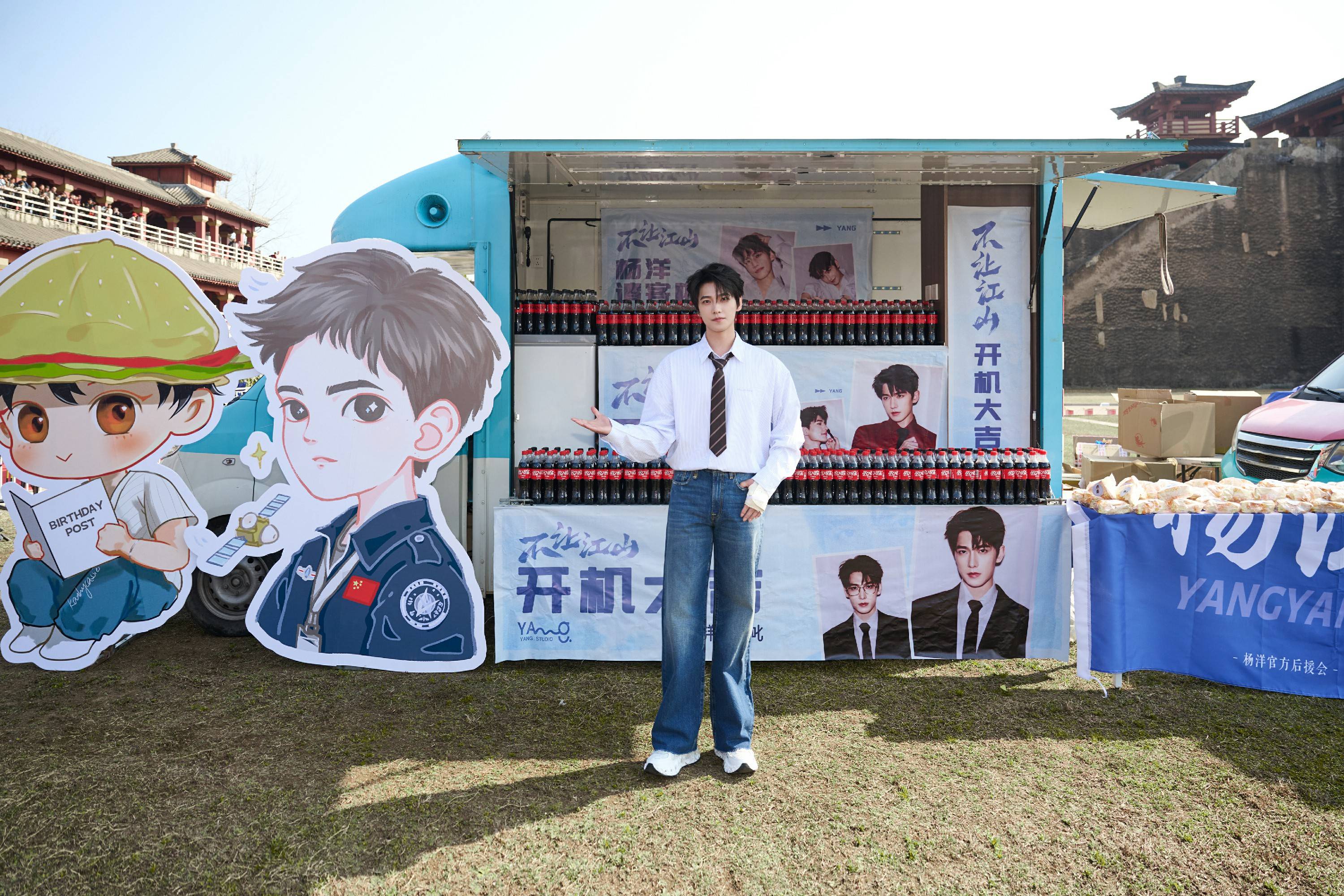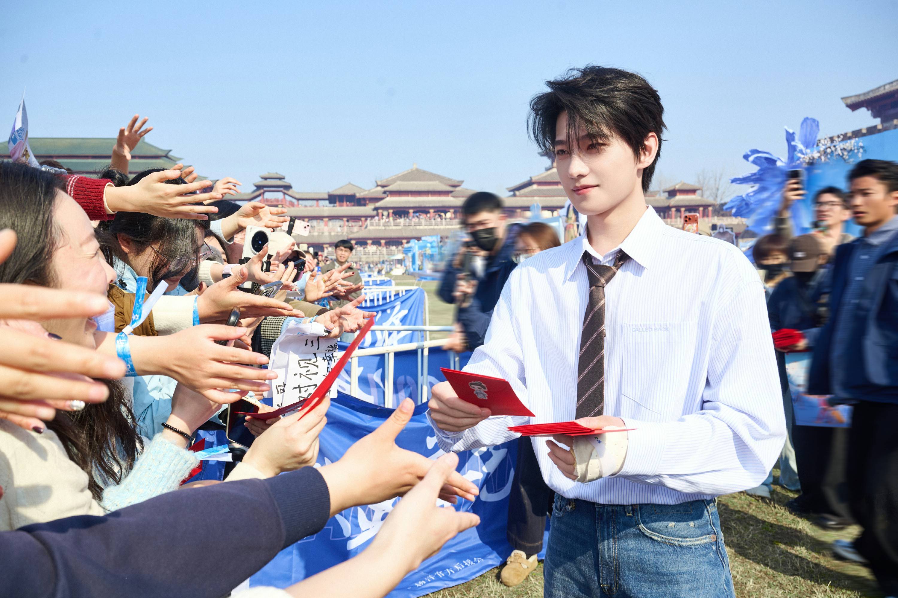 开机现场,杨洋与主创团队一同现身仪式,共同见证《不让江山》的正式启程。仪式结束后,杨洋也来到粉丝应援区域打卡,与到场支持的粉丝们亲切互动,感谢大家一直以来的陪伴与支持。现场气氛热烈而温暖,他还参与了粉丝准备的互动小游戏,并为大家派发新年红包,送上新年的祝福。