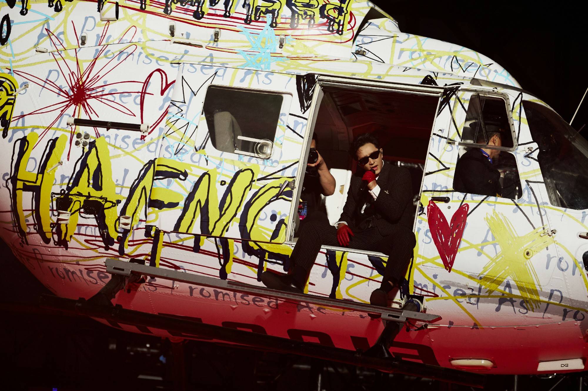 当晚19:00,演唱会准时开始。韩庚以一身墨镜黑色西服黑色西裤的造型惊艳亮相,伴随着经典歌曲《My Logo》的节奏,从直升机上震撼降落到舞台中央。这一惊艳开场瞬间点燃了全场观众的热情,所有人抬头向空中望去,一齐迎接「如约」的到来,欢呼声响彻城堡夜空。