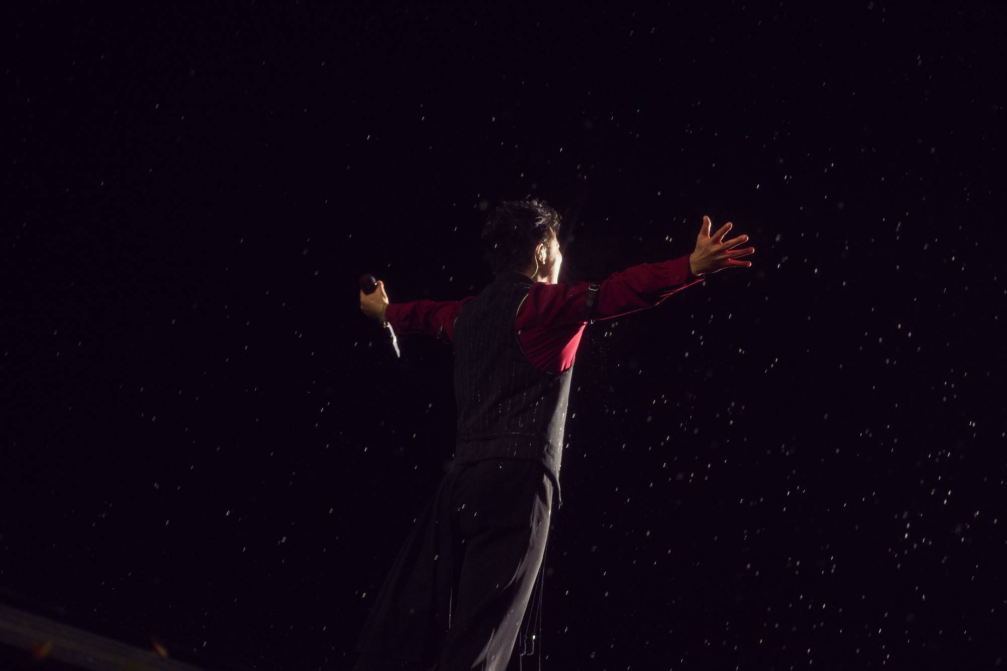 安可环节,韩庚换上了特别的“如约”工作服,重返舞台在雨中尽兴演唱了重制版《爱的翅膀2025》。这首歌曾经是粉丝送给他的礼物,如今他以全新编曲回赠给所有到场的观众。歌词中“给你穿越风雨的力量”,恰好与突如其来的大雨相呼应,成就了最动人的巧合。最后韩庚跑下舞台,跑向观众们互动合唱,为20周年演唱会画上圆满的句号。“舞台上的他,曾和纯粹的热情一起,占满了他们的青春时代。舞台下的他们,曾怀抱最诚挚的热爱,陪伴了他的青春时光。”