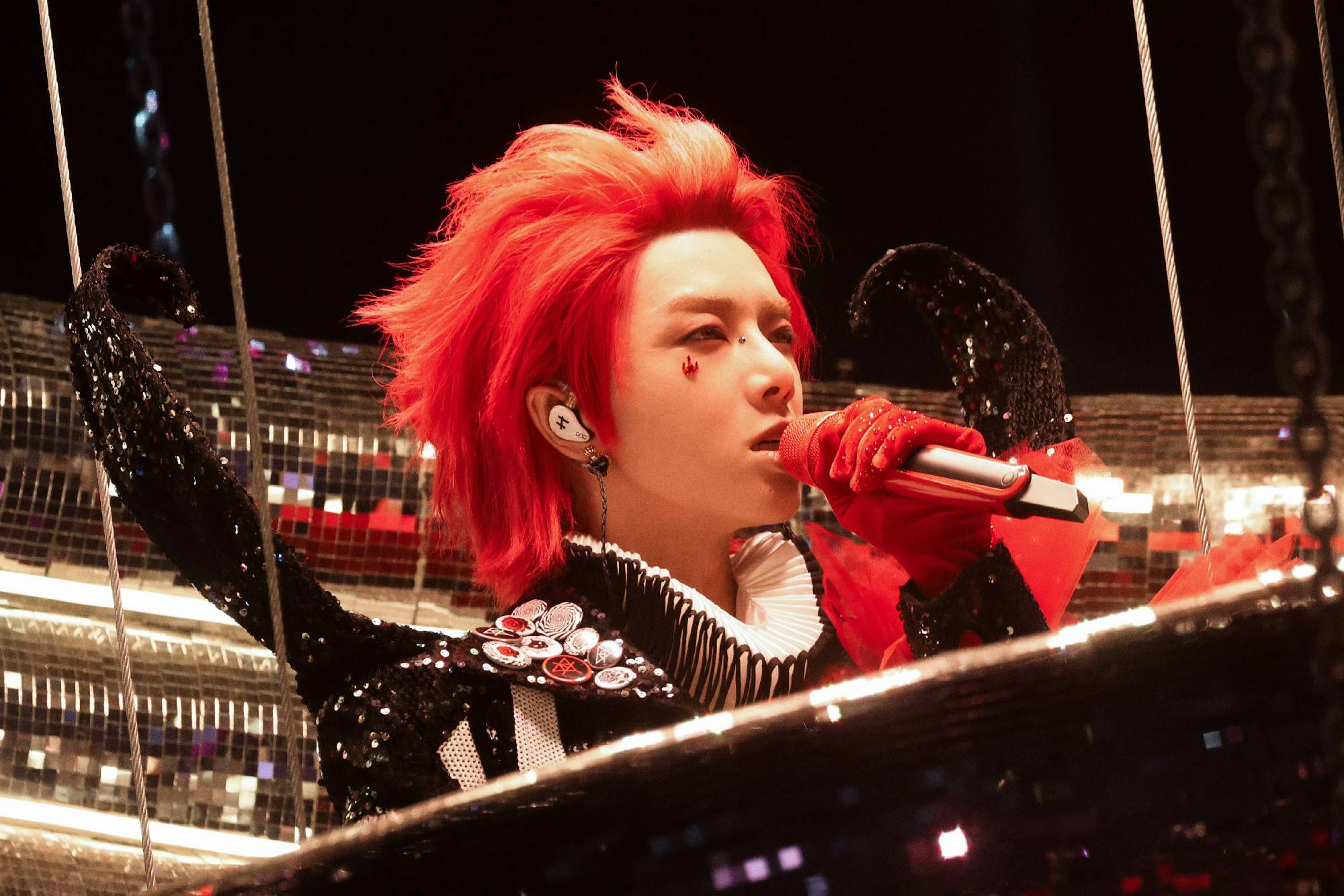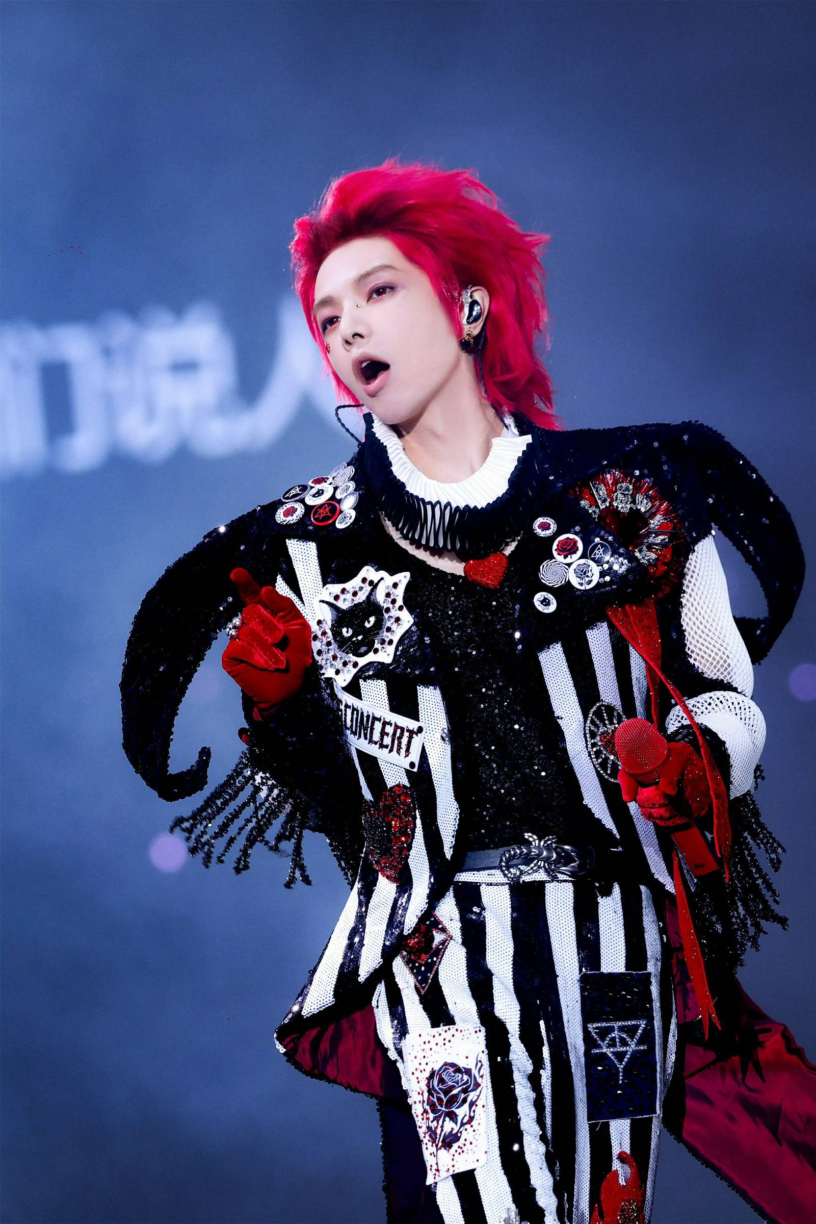 演唱会现场,华晨宇用精心编排的歌单串联起时光的脉络,既有经典曲目,也有今年一月上线的第六张个人专辑《量变临界点》中新作的呈现,每一首都如同璀璨星辰,在音乐的宇宙中闪耀独特光芒。华晨宇红发赤瞳,身着挂满“火星”元素的黑白条纹装登场,他肩头一双灵动的牛角形装饰为整套造型增添了更多活泼感,一举一动间仿佛变身个性张扬的小恶魔。开场曲《虚幻与现实》以极具冲击力的摇滚节奏点燃全场,华晨宇充满爆发力的嗓音如同利刃,划破寂静夜空,音乐狂欢瞬间开启。他以精湛的演唱功力将摇滚组曲《我管你》《拆弹专家》《黑白艺术家》《斗牛》《永不熄灭的火焰》一一呈现,并跟随摇滚节奏律动,展现出非凡的舞台掌控力,贡献了令人难忘的高光名场面。