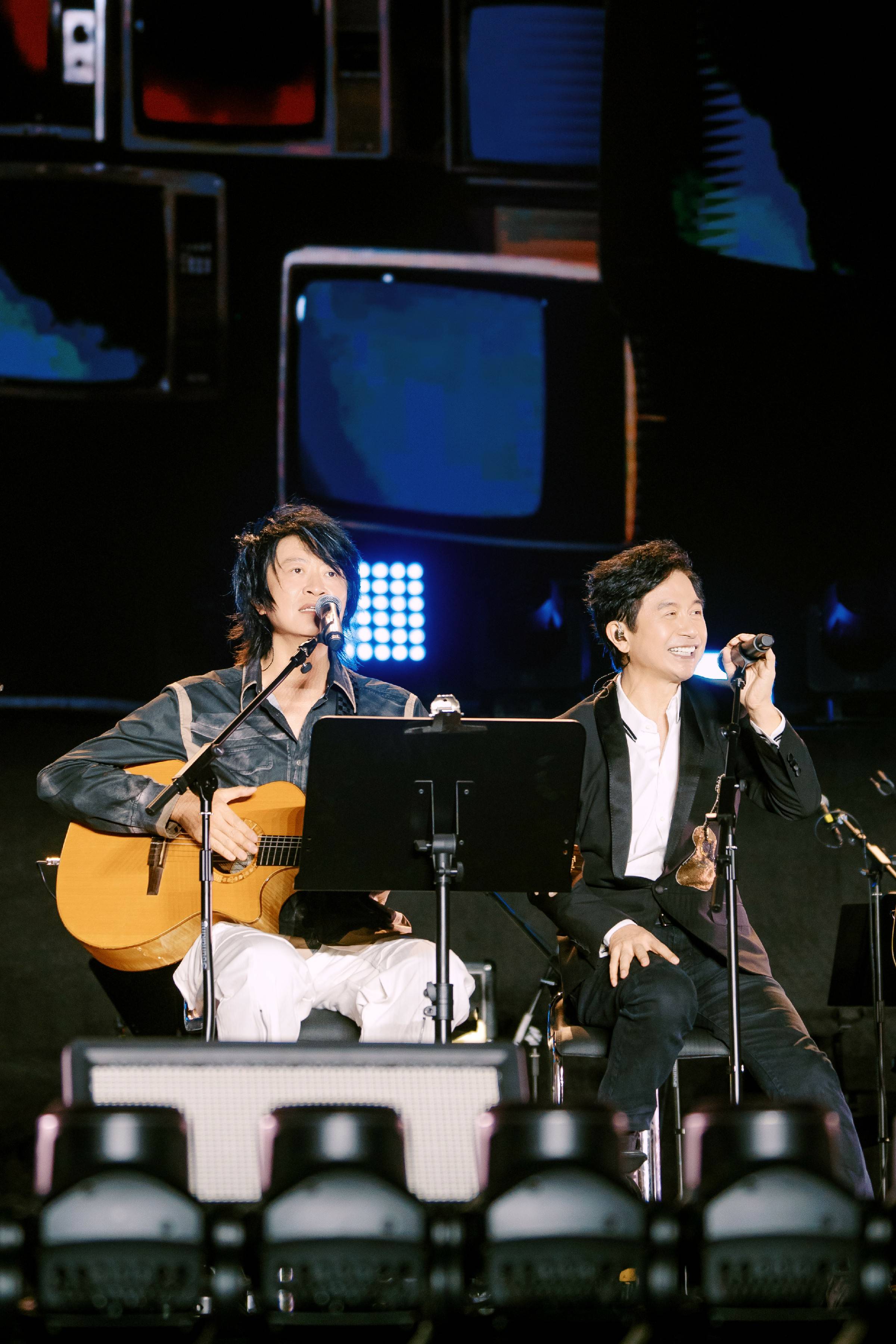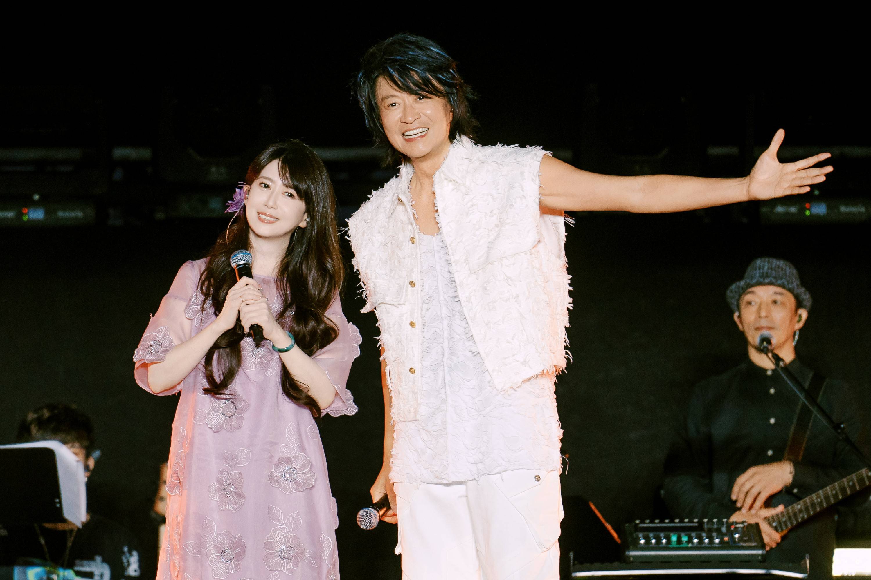 游鸿明此次杭州站演出延续“春寻、夏思、秋忆、冬迎”的四季情感脉络,用20余首金曲带领观众走过跨越三十年的音乐时光。当《下沙》《一天一万年》的旋律响起,全场自发的大合唱瞬间将氛围拉满;而特邀嘉宾孟庭苇的登场,更是让现场陷入“青春暴击”——两人同台合唱《不下雨就出太阳吧》,清甜与磁性的声线交织,既还原了90年代华语乐坛的黄金质感,又让这首经典作品多了一层“老友重逢”的温柔滤镜。