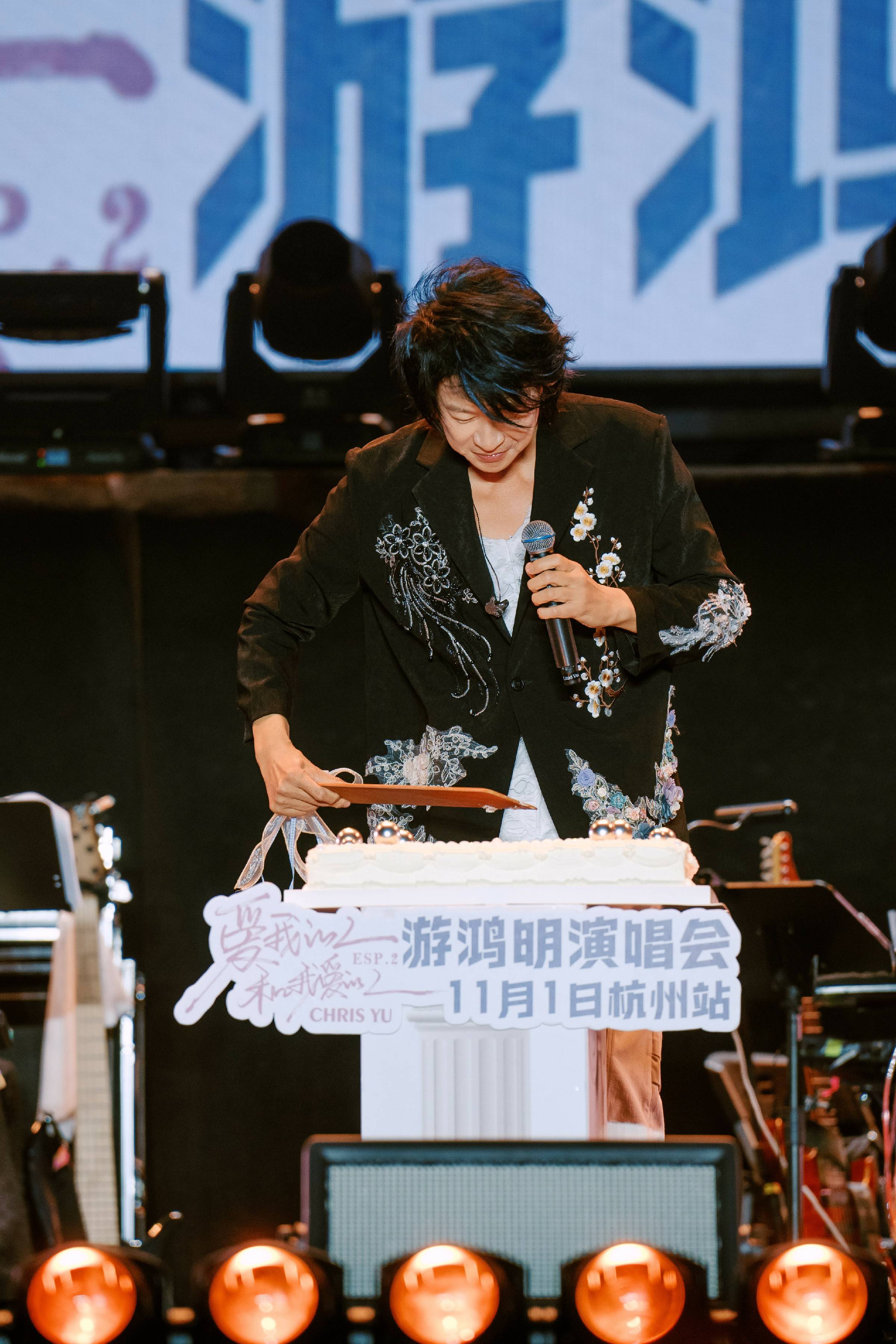 而演出中的“生日环节”更是将氛围推向高潮:特邀嘉宾黄舒骏与游鸿明女儿游宇潼突然推着生日蛋糕走上舞台,全场观众齐唱《生日快乐》,游鸿明在掌声中许愿:“希望每场演唱会都能和大家一起回忆时光,也想在杭州住一阵子,绕着西湖喝龙井茶、坐游船,再去灵隐寺走走,顺便搜寻巷弄里的美食——尤其是杭州的面食,我特别喜欢”,温柔的告白让现场不少歌迷红了眼眶。