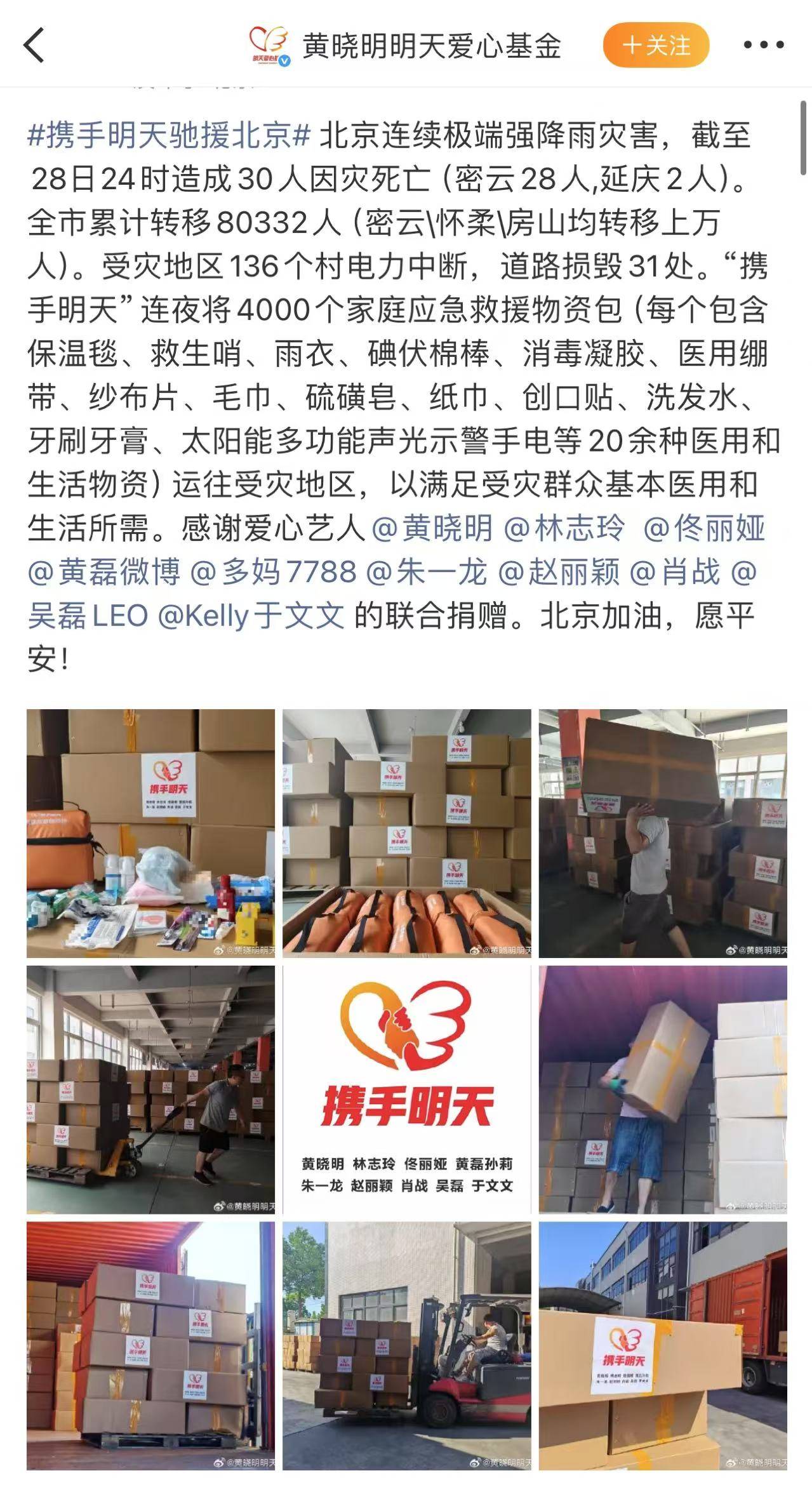 无论是响应驰援的速度,还是跨省调度的效率,都源于一份二十年如一日“用行动回馈社会”的初心。他早已将公益融入生命,资助教育、关爱老人、支援抗疫、救灾重建,累计投入巨大,只为践行那句:“公益是细水长流的坚持”。天灾无情人有情,黄晓明不仅送去了急需的物资,更传递了冲破风雨的温暖与力量,为受灾群众点亮希望之光!