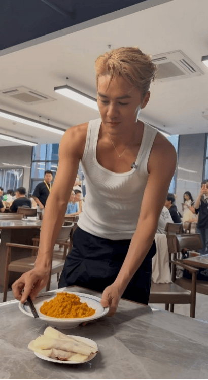 当吴克群和学生一起吃饭时,认出旁边座位上有喜欢自己多年的粉丝,吴克群突然送了一份烤鸭卷到对方面前。更让人惊喜的是,听到粉丝说想吃蟹黄拌饭,他立刻转身,询问过其他人的意见后,从桌子上端来一份金灿灿的拌饭:“慢慢享用,祝你有一个好的中秋佳节。”妥妥的食堂限定版“许愿池”。