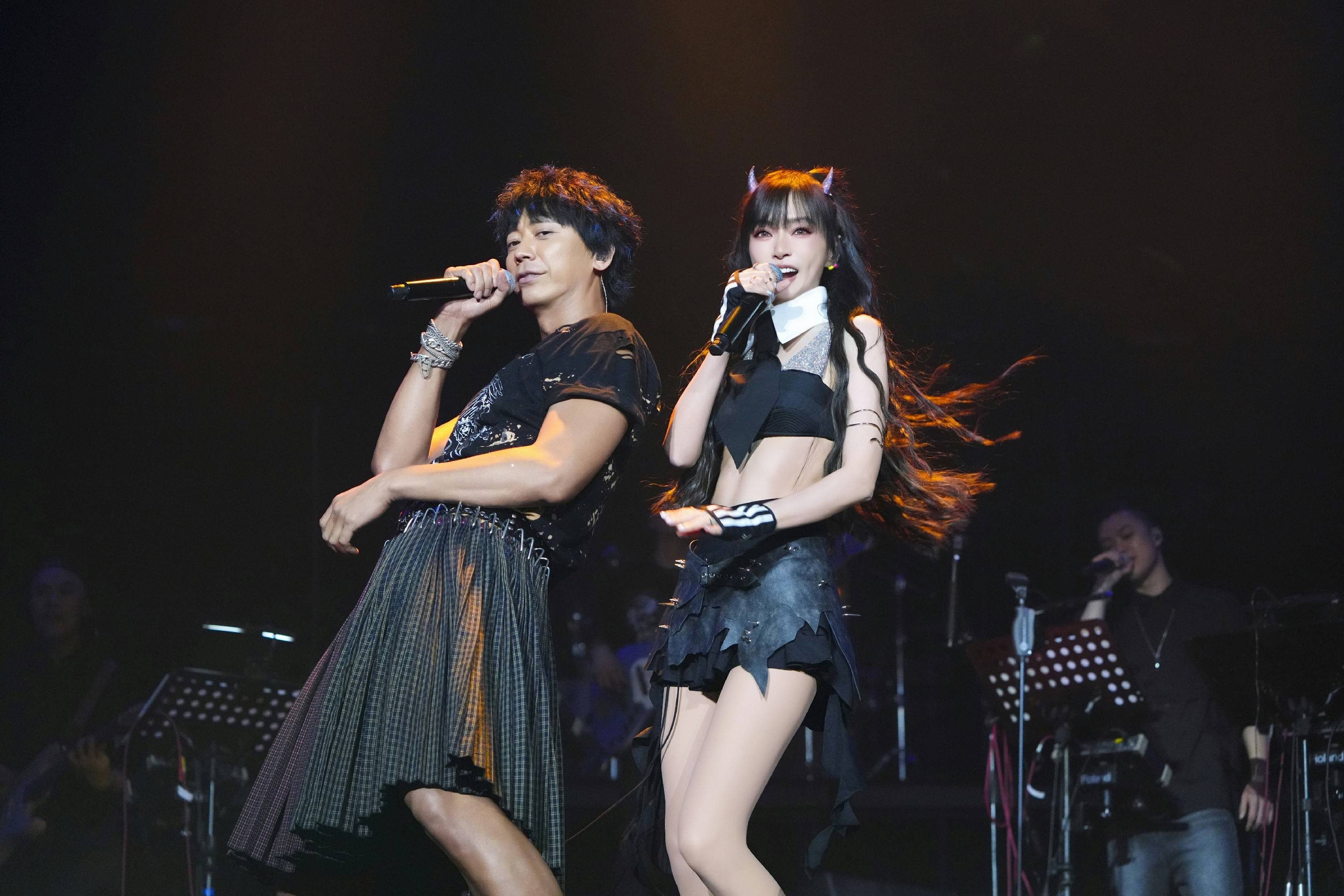 “可以和神秘美丽的谢金燕姐姐合作,是我一直以来的心愿。”两位舞台表现力超强的实力派歌手接连献上专门为福建观众准备的闽南语舞曲《练舞功》,以及不可错过的K歌金曲《姐姐》。当“跳针跳针跳针叫我姐姐”的洗脑旋律伴随着两人的热辣舞蹈响彻整个体育馆,全场欢呼沸腾。信笑说,“我唱那么多首自己的歌都没有压力,但是《姐姐》要跳舞让我好紧张。”