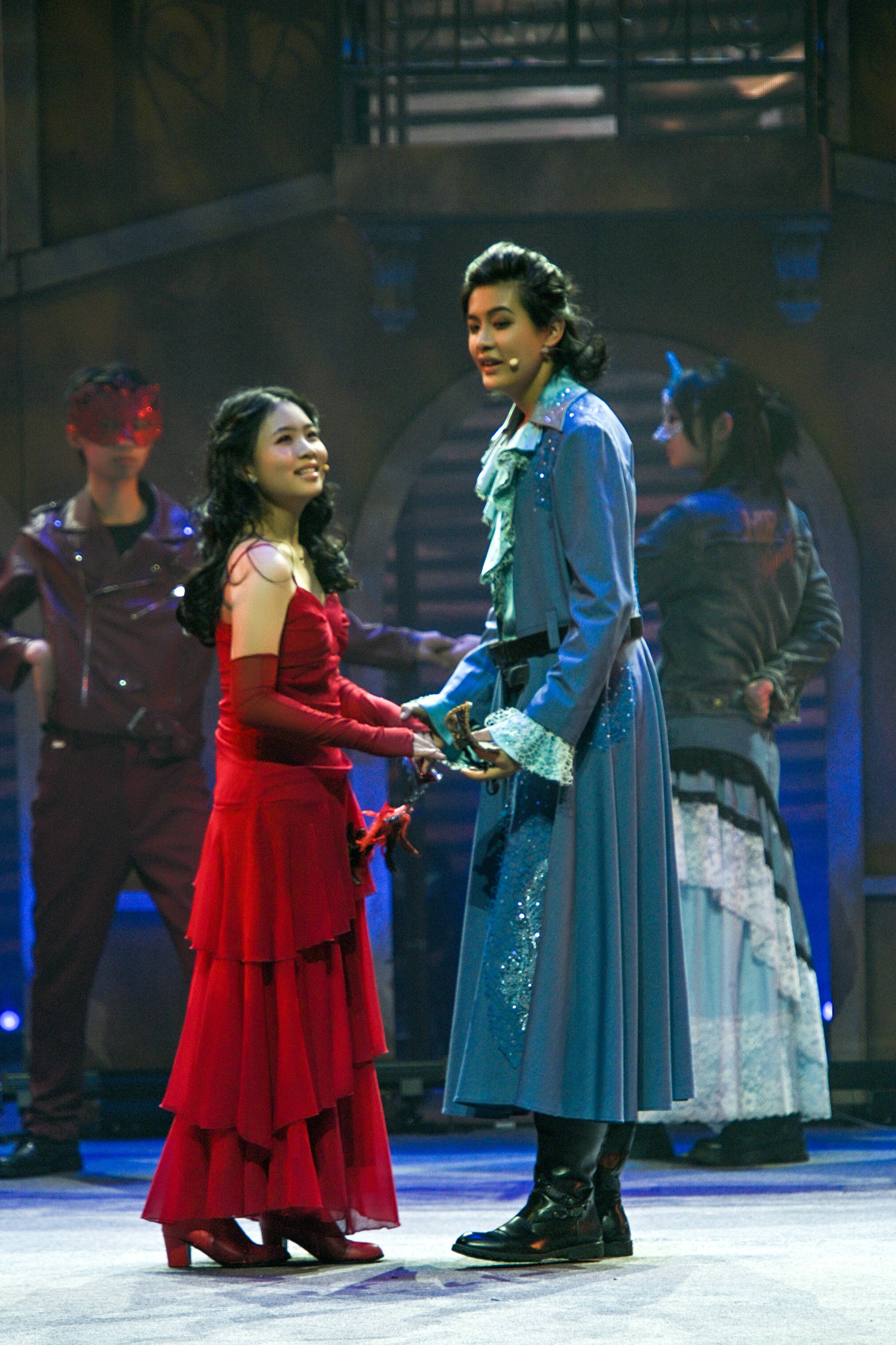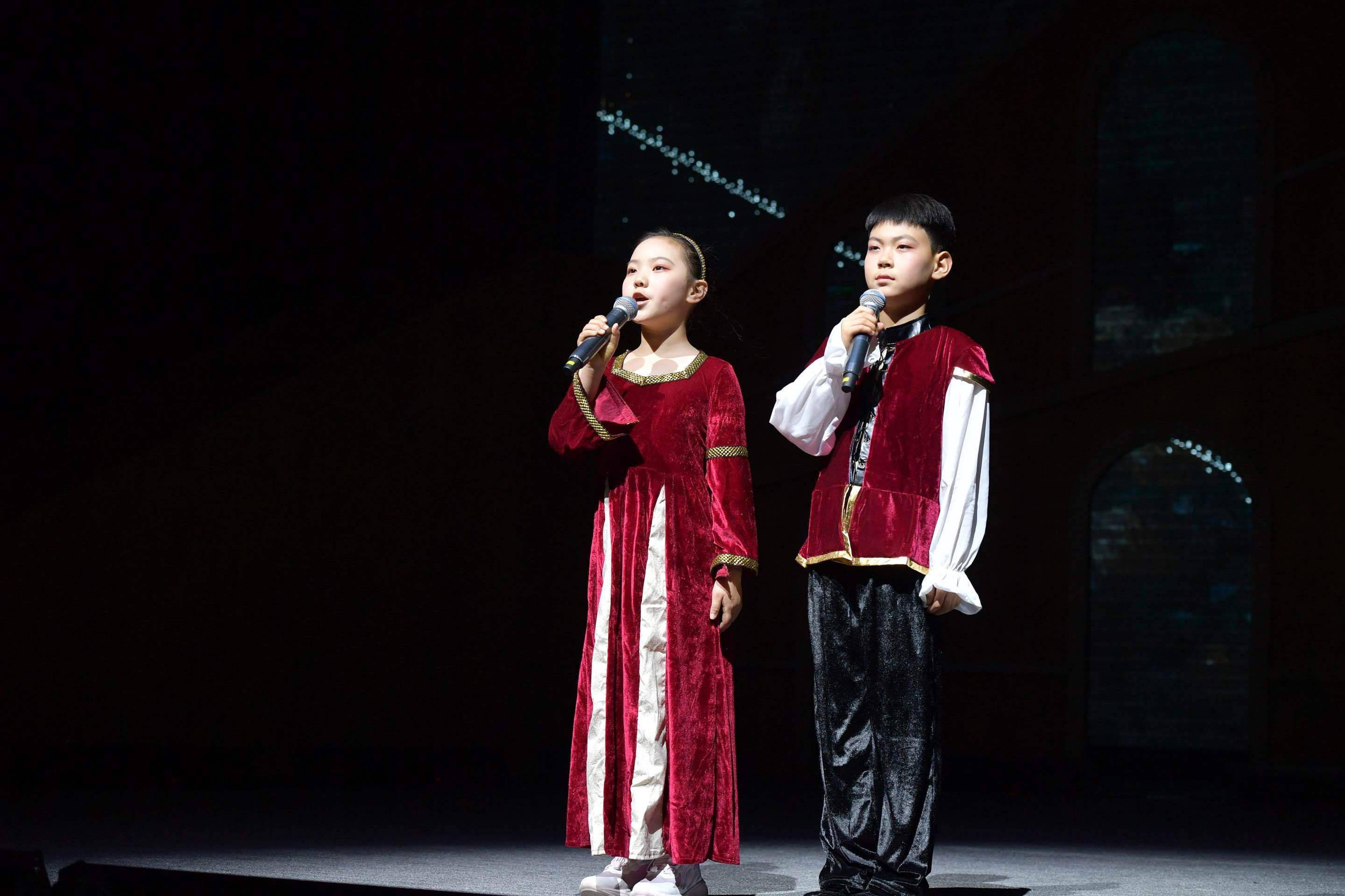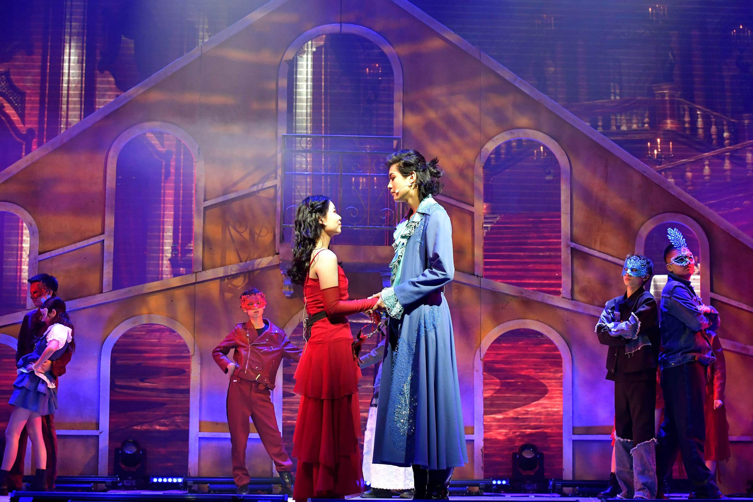 原版法语音乐剧《罗密欧与朱丽叶》与《悲惨世界》《巴黎圣母院》并称法国三大音乐剧,25年来风靡全球,观众超6.5亿。在其初代卡司全球告别巡演之际,中杉学校的孩子们勇敢地接过了这束“维罗纳的月光”。本次“青春版”的独特之处在于,主演朱丽叶(郗昱霖饰)与罗密欧(朱棣文饰)正是14岁与16岁的年纪,完美契合了莎翁笔下人物最本真的青春模样。他们的演绎,少了匠气,多了未经雕琢的清亮与属于这个年纪的纯粹勇敢。