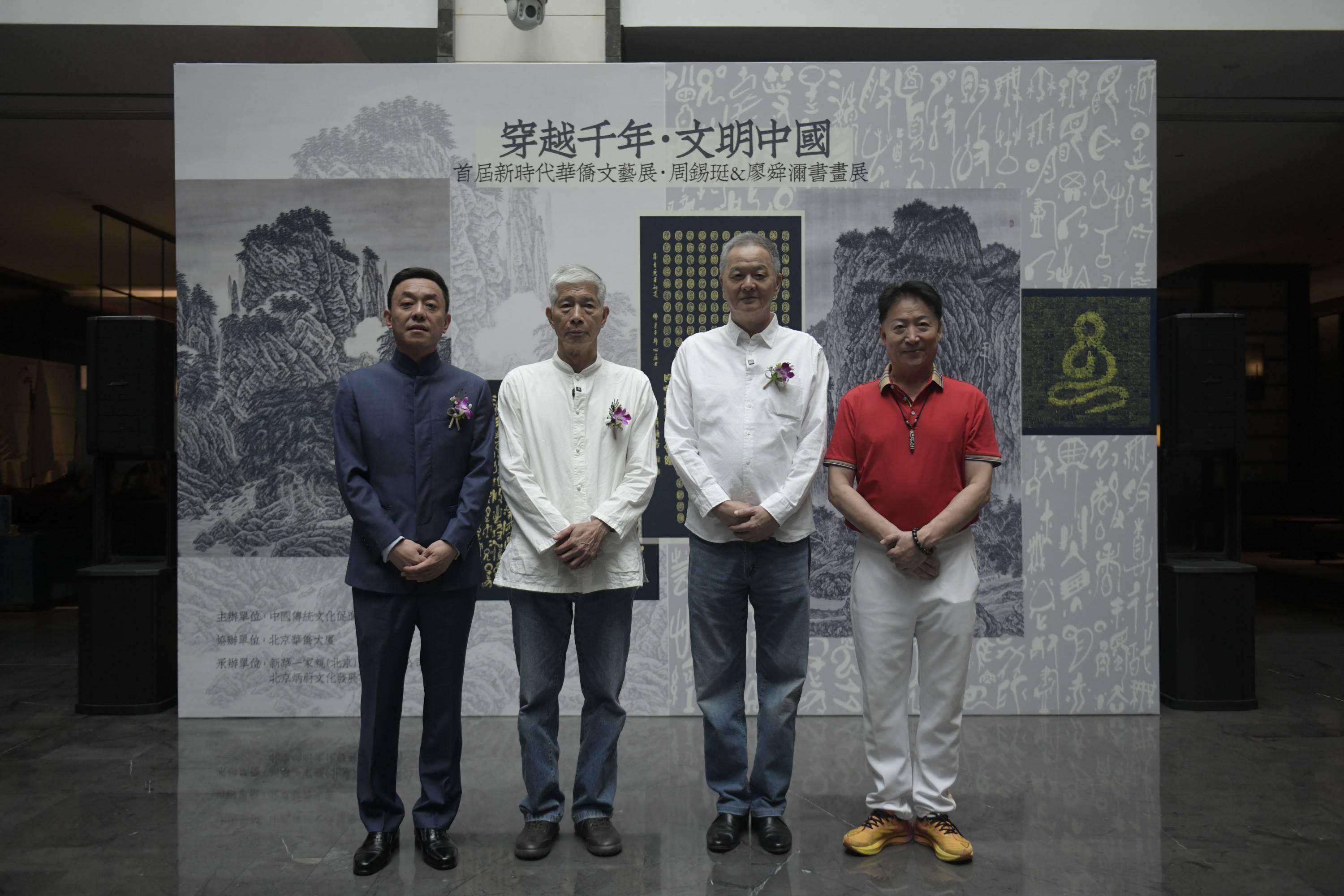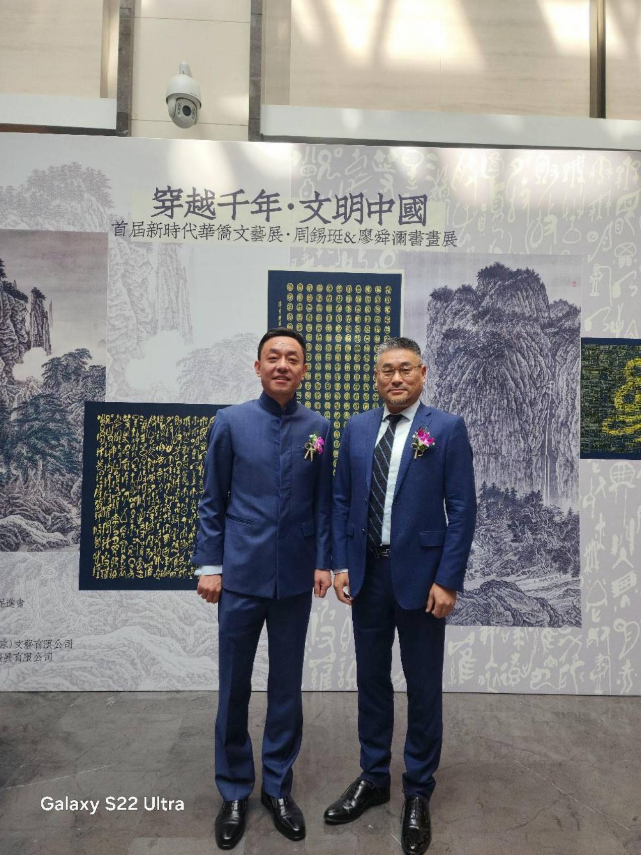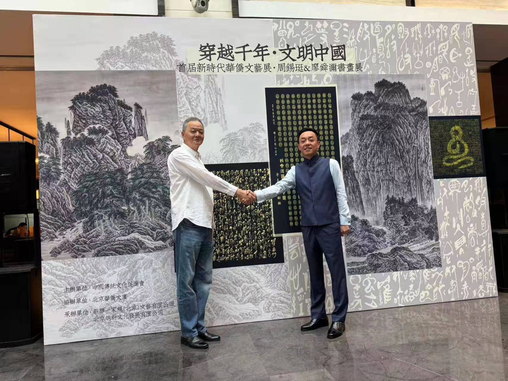 2025年9月20日,今日下午,由中国传统文化促进会主办,新華一家亲(北京)文艺有限承办,北京華侨大厦协办,中国太极文化国际交流中心特别支持的首届《穿越千年·文明中国》周锡珽 廖舜沵大师展在北京華侨大厦隆重启幕。本次展览聚焦周锡珽与廖舜沵两位杰出艺术家的近作精品,通过山水与书法的对话,展开一场跨越千年的文明溯源与当代转化之旅,为金秋北京带来一场融合传统精神与当代语汇的艺术盛宴。