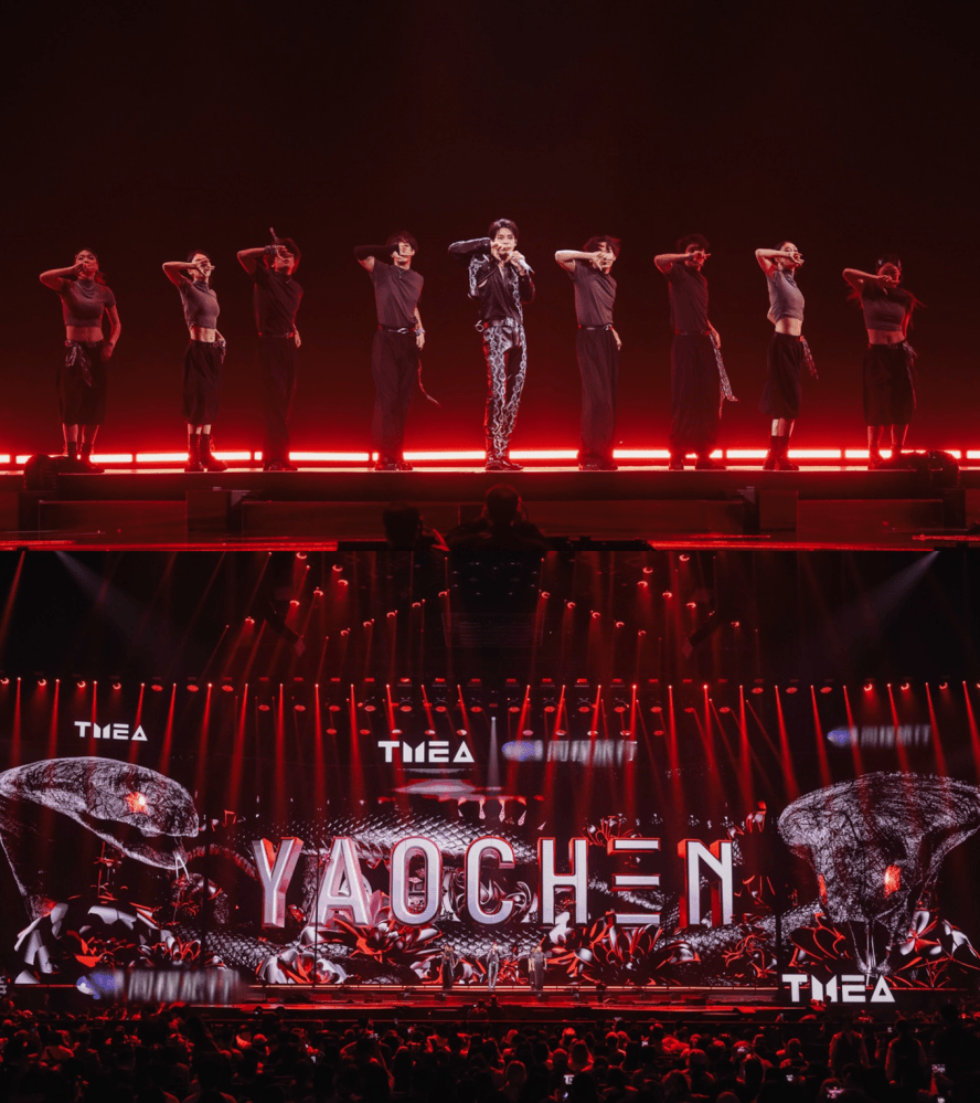 在当晚的盛典舞台上,姚琛带着全新改编的《SNAKE》惊艳亮相,充满蛇元素的舞台造型搭配现场大屏幕中的巨蛇画面瞬间点燃全场,伴随着强烈的音乐节奏以及姚琛极致的舞台掌控力,现场观众也享受到了一场极具震撼力的视听盛宴,被誉为本届盛典最瞩目的高光时刻之一。值得一提的是,这也是姚琛第四次登上TMEA腾讯音乐娱乐盛典的舞台,一如既往的超绝视觉效果和高品质的舞台表演,也再次印证了姚琛被业内外认可的“舞台匠人”称号。