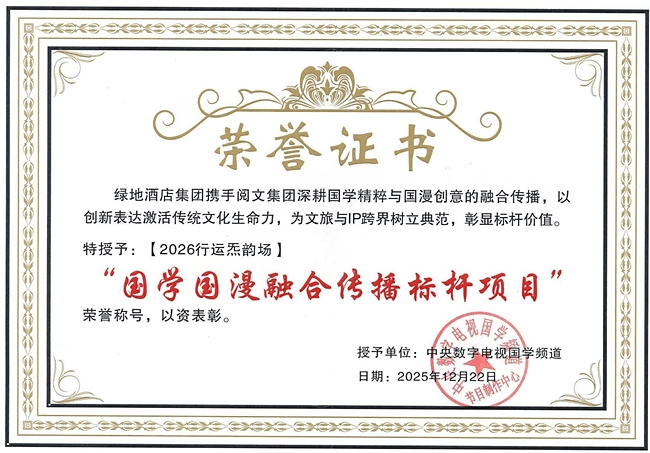 此次活动将在上海三甲港绿地国际度假村、上海虹桥绿地世界中心酒店群两大地标项目中开展,为国内国漫爱好者带来一场难忘的跨年之旅。中央数字电视国学频道还为双方合作的【2026行运炁韵场】授予“国学国漫融合传播标杆项目”荣誉称号,肯定了此次跨界合作在传统文化创新传播领域的示范价值。