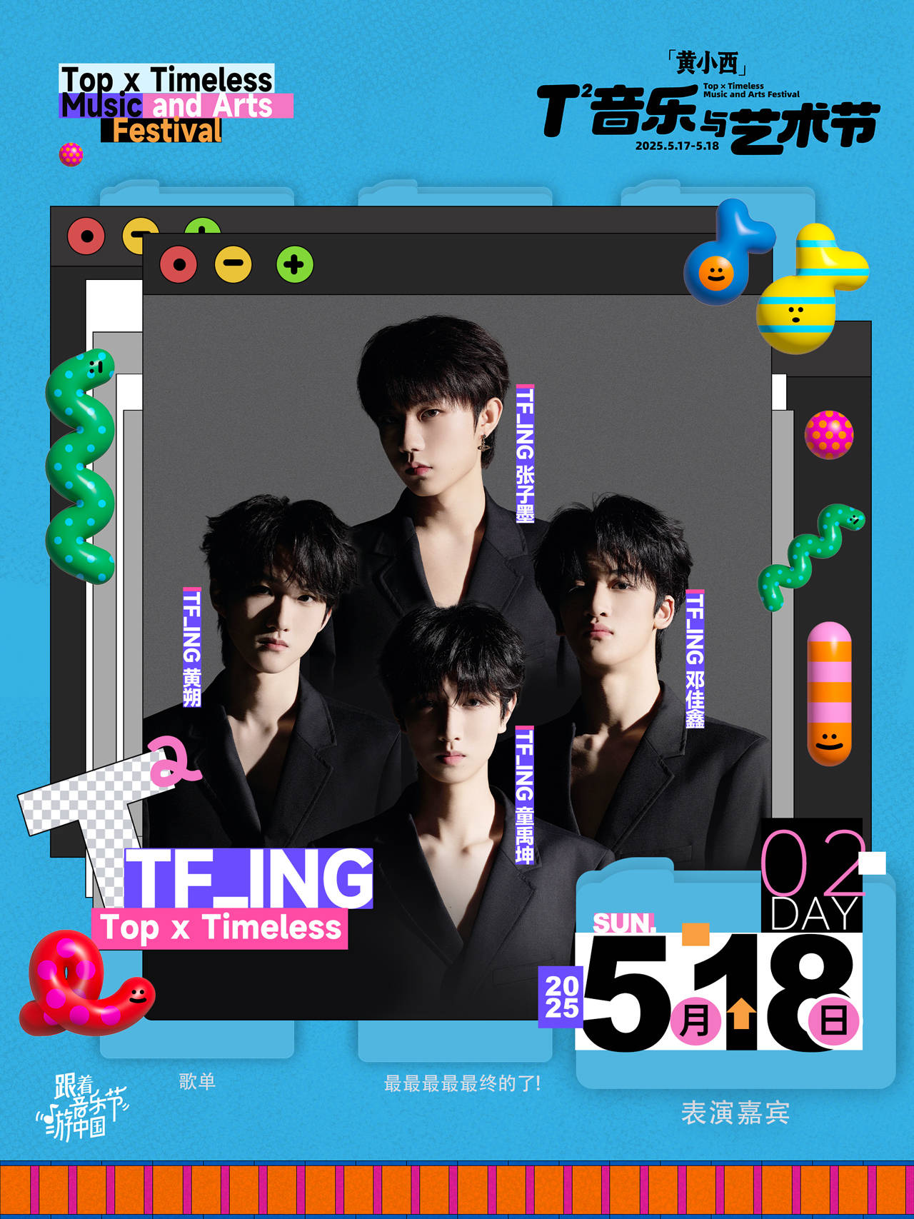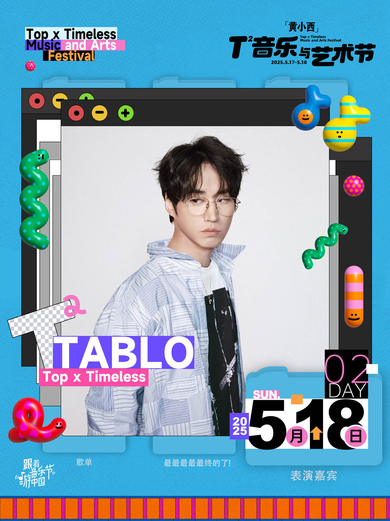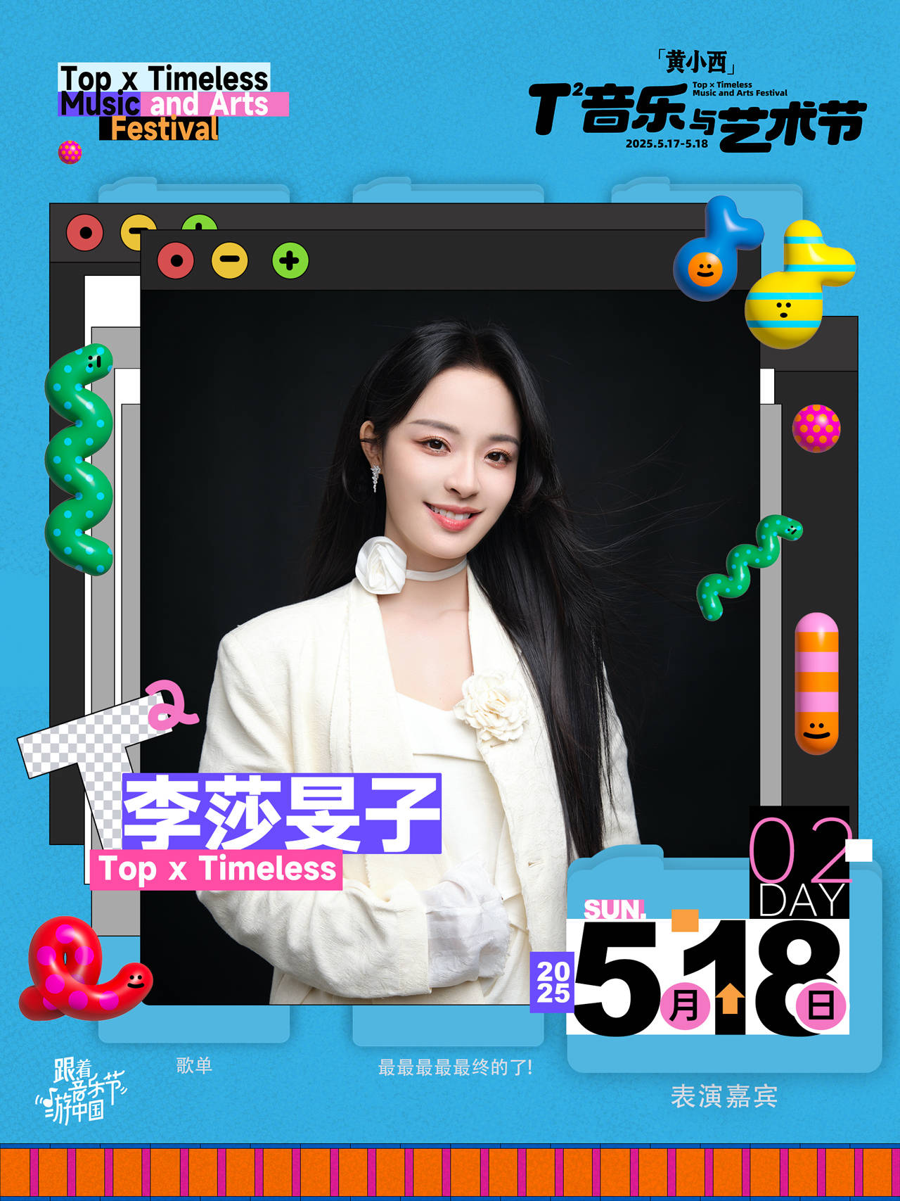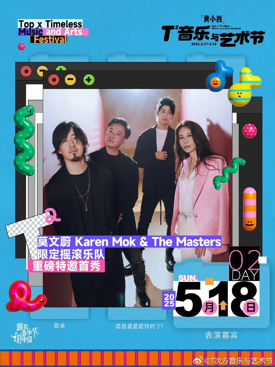 期待5月17日-5月18日的「黄小西」T²音乐与艺术节现场,崔健的摇滚声浪与萧敬腾的爆发舞台碰撞出火花,AK刘彰的激情rap与二手玫瑰的二人转美学同台争艳,乐迷们在音乐里为热爱沸腾。