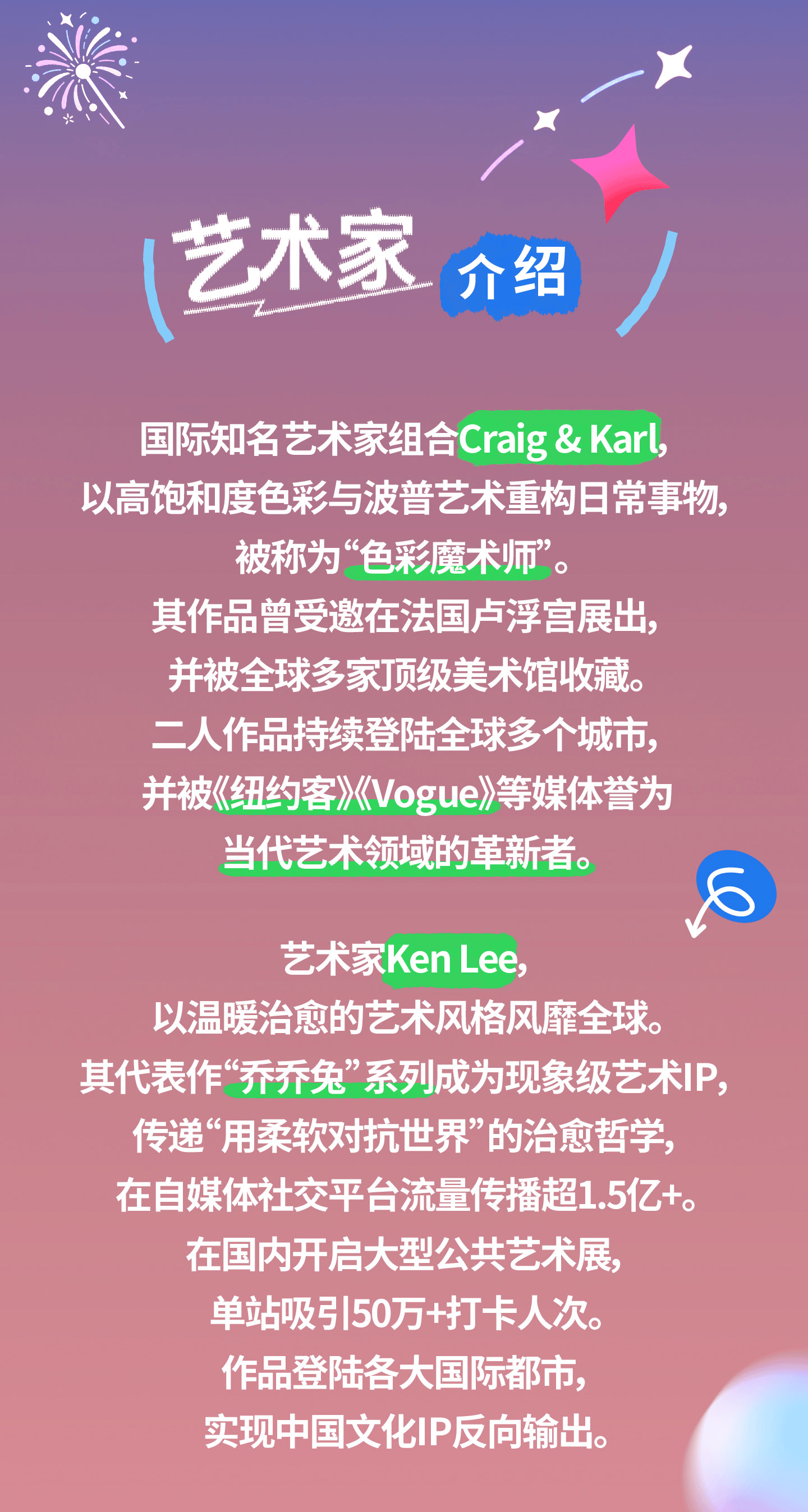 舞台之上狂欢不断,舞台之下创意满满,音乐节特别打造"黄小西和朋友们的绿色节日"主题艺术展,由国际知名艺术家组合Craig&Karl与现象级IP创作者KenLee联袂呈现。Craig&Karl以标志性的高饱和度色彩,构建了一个充满童趣的"波伦星球",而KenLee笔下的治愈系角色"乔乔兔"将带领观众开启一段环保奇旅。现场还特别设置互动装置"咕噜噜兽(GululuBeast)"——一只专"吃"废弃纸杯的彩色环保怪兽,观众投递的纸杯将在其体内逐渐堆叠成动态艺术雕塑,让环保行为变身视觉共创体验。此外,活动还特别邀请联合国前秘书长潘基文与青年绿色使者们现场交流。这场融合波普艺术与治愈美学的展览,用快乐方式重新定义可持续生活。