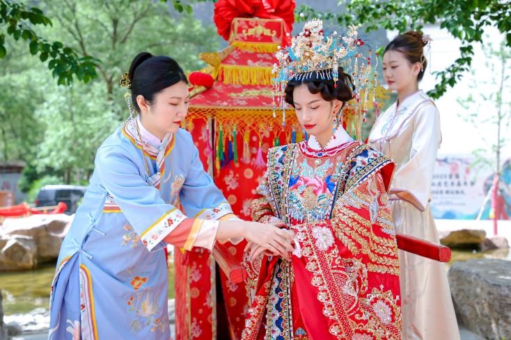 在这场文化盛宴中,婚礼文化展示成为一大亮点。明朝婚礼巡礼将传统婚俗礼仪与文化元素完美融合,为嘉宾们带来沉浸式文化体验,生动展现了中华传统文化的深厚底蕴与独特魅力。清朝婚礼书巡礼通过珍贵婚书展示与专业解读,让嘉宾深入领略清代婚嫁文化的精妙之处。民国答谢婚书巡礼则以复古格调与感恩情怀再现民国婚嫁文化的别样风情。曹操大营内古朴大气的汉朝婚礼书巡礼,彰显了大汉婚俗文化的雄浑魅力。大堂茶室开展的宋朝文创体验婚书巡礼,将传统文化与创意元素有机结合,带来全新文化感受。