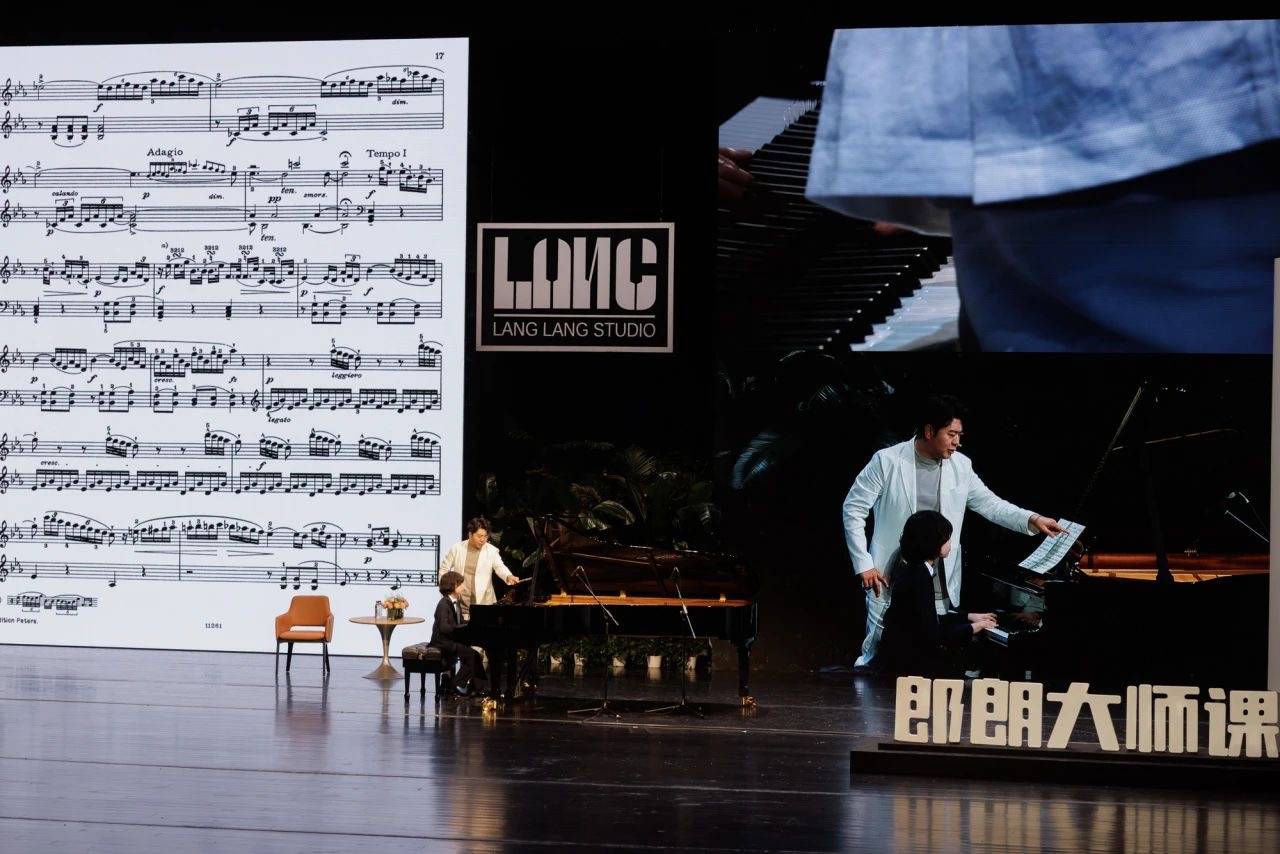 24日下午的大师课则凸显了郎朗艺术周的公益属性。在台湖舞美艺术中心台湖剧场,四位琴童在郎朗的指导下演奏了舒伯特、勃拉姆斯等作曲家的作品。通过实时手部特写与乐谱投影,观众得以近距离观察大师如何将技术难点转化为音乐表达。通过沉浸式教学与科技化呈现,开启艺术传承新篇章。