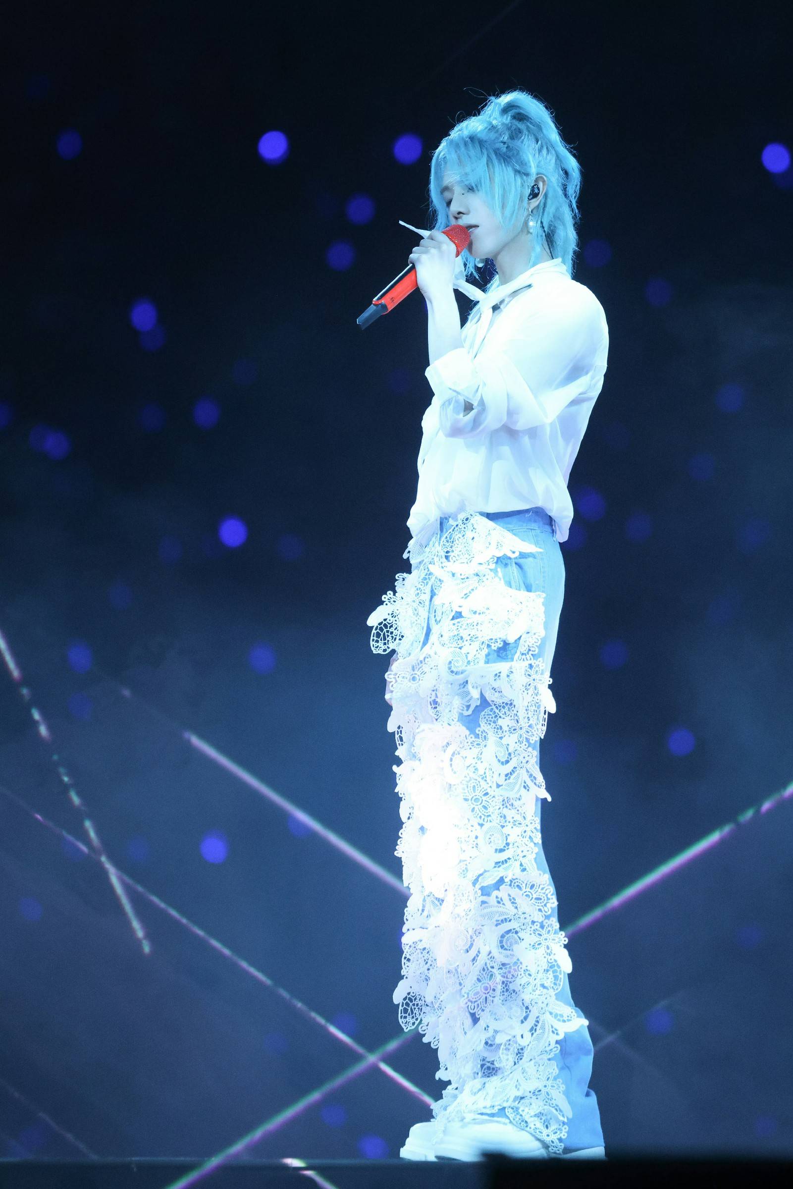 2023年火星演唱会在成都举办了户外乐园模式演唱会,这是华晨宇第一次把四面台带到成都。恰逢端午节,他为歌迷送上了真挚祝福,也在音乐中与歌迷欢度节日。华晨宇用极具感染力的歌声和氛围感十足的造型点燃了现场数万歌迷的热情。开场他乘坐全钻螺旋升降台从高空缓缓下降,震撼的开场曲《虚幻与现实》唱出了强大的气场,仿佛打开了新时空的大门。华晨宇两天演唱会以十二套前卫造型示人,超强的时尚表现力令人印象深刻。第一晚他一袭霹雳粉拖尾长袍搭配橘粉色长发开场十分惊艳,霸气之中不失优雅。而他第二晚的妆造同样打破常规,束起蓝色高马尾,充满少年感。跟随音乐节奏甩头,更是潇洒灵动,展现出独一无二的魅力。而之所以选择高马尾发型,是因为上一站演唱会华晨宇与歌迷打赌是否下雨,败给了歌迷,为了兑现对歌迷的承诺,成都站特地以高马尾发型亮相。华晨宇不单单在音乐上具有创新精神,在妆造上更是敢于突破,这不仅保证了音乐舞台在视听层面的完整性,也彰显出他对音乐的极致追求以及鲜明的先锋精神。