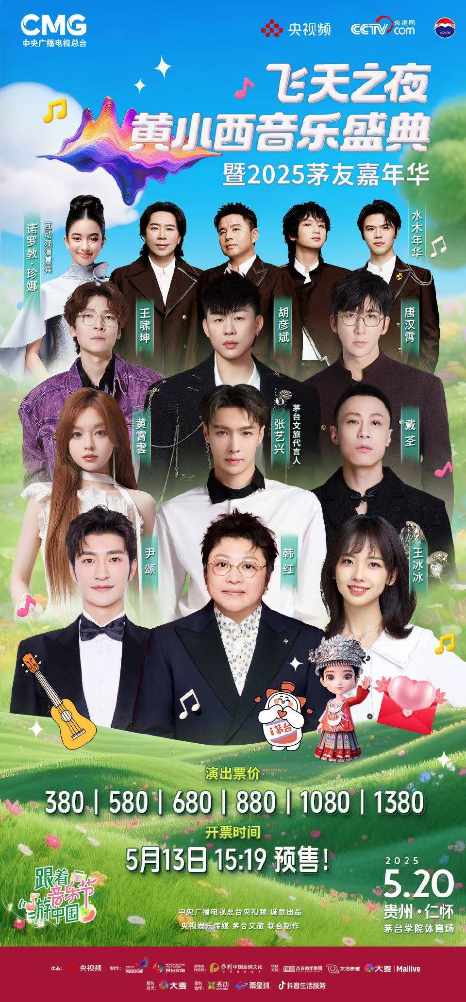 2025年5月20日,贵州省仁怀市茅台学院体育场将迎来一场前所未有的音乐文化盛事——“飞天之夜黄小西音乐盛典暨2025茅友嘉年华”本次活动由中央广播电视总台央视频与茅台文旅联合主办,旨在打造一场融合音乐表演、文化展示与酒业特色的综合性嘉年华,为观众带来独特的视听体验。