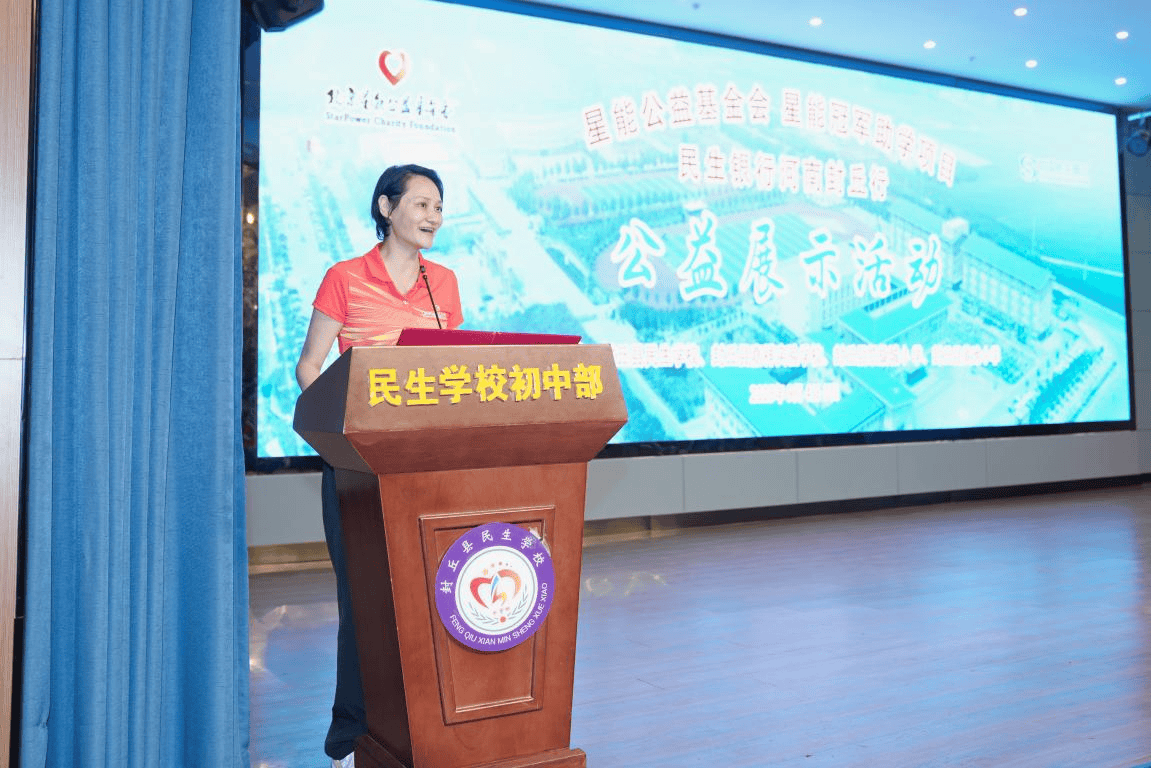 足球冠军教练朱金梅则以生动比喻阐释运动与读书的意义:“读书是向内扎根,让灵魂有厚度;运动是向外生根,让身体有力量。”她高度肯定星能公益基金会所从事的教育体育事业的伟大意义,并代表大家向基金会致以感谢,感谢其为孩子们带来奥运梦想与体育成长的契机。