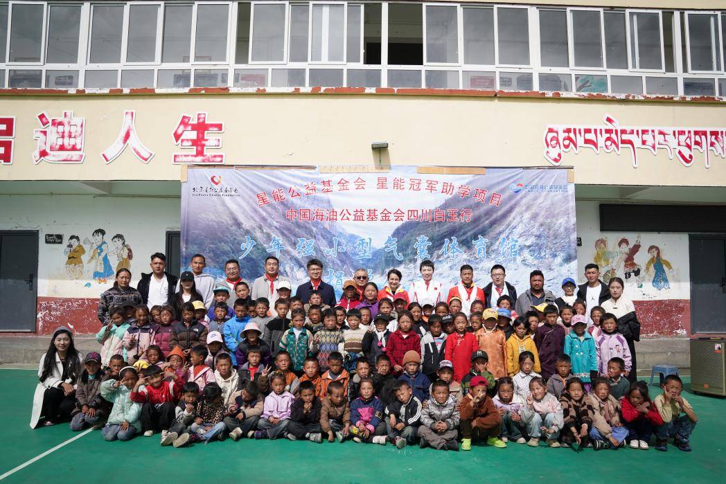 2025年9月18日,北京星能公益基金会携手中国海油公益基金会在四川省甘孜州白玉县纳塔乡中心小学开展了“星能冠军助学项目-中国海油公益基金会四川白玉行”少年强小型气囊体育馆捐赠暨揭牌仪式。