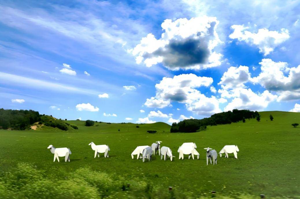 作品尺⼨:单个⽺ 1~1.3 m ⾼,数量约 10 只