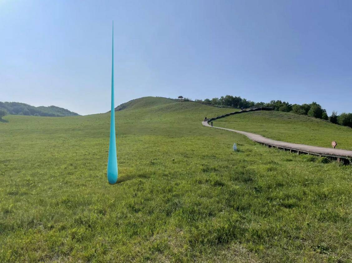 大地艺术季秉持绿色旅游的理念,深度呼应赤峰当地的生态本底——以从天而降的水滴追溯西拉木伦河的源头;用率真自然的线条构建宛若泼墨山水的当代雕塑;想象如白云般纯洁的哈达影院在风中飘扬;于自然的怀抱中勾勒富有草原韵律的天际线……艺术作品与草原环境深度融合,倡导人与自然和谐共生的环保理念。