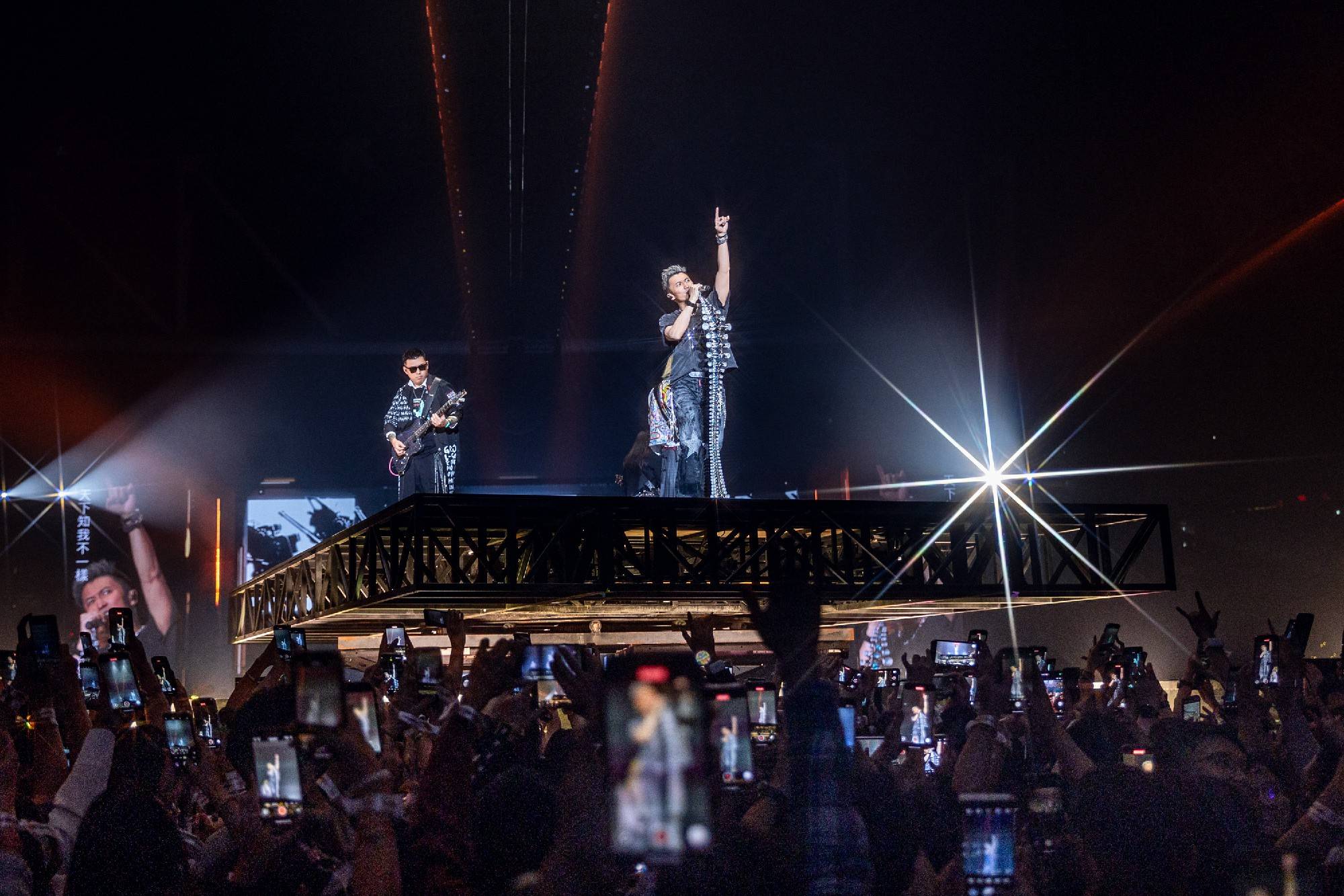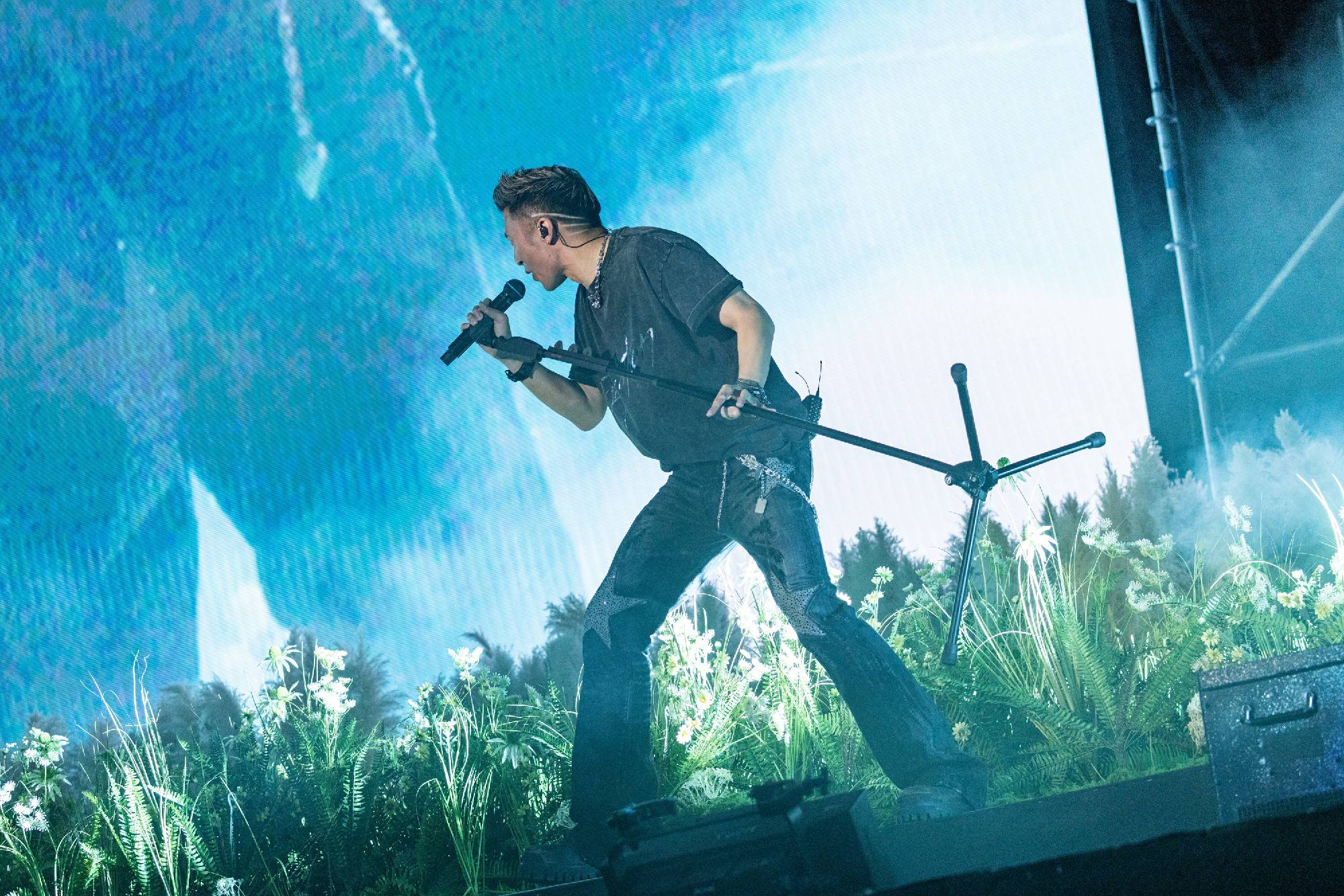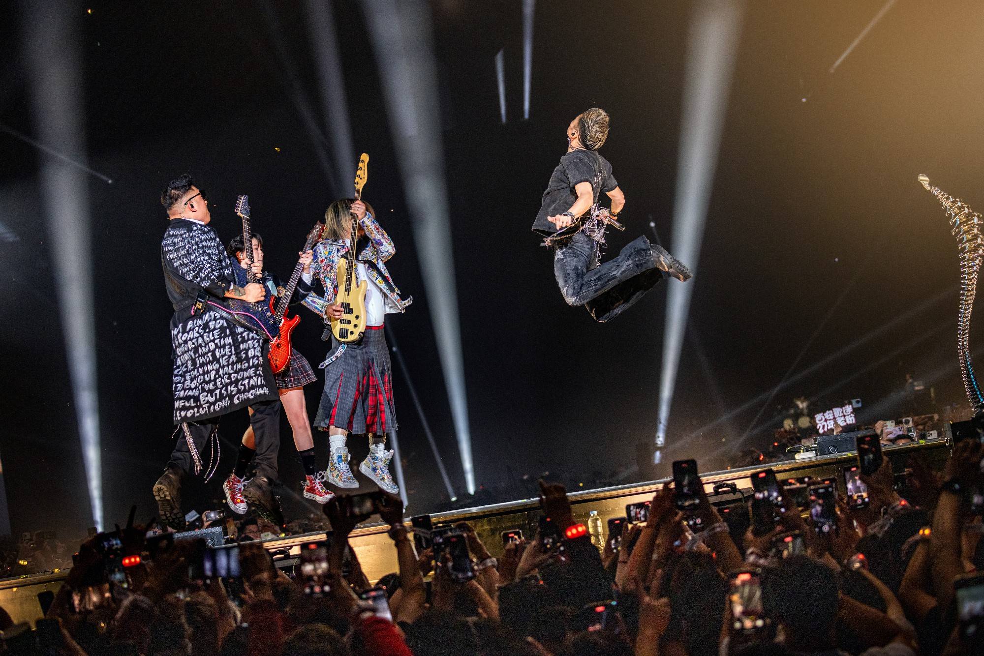 在连唱四晚的演出过程中,谢霆锋状态持续在线,每首金曲的舞台都给人留下十分深刻的印象。《爱最大》特别邀请王嘉尔录制rap部分,并在vcr中加入宣扬环保的内容,呼吁大家共同爱护地球。《黄种人》搭配以“万里长城”为灵感的定制麦架,展现文化自信与精神传承。除此之外《活火山》的喷火装置让人身临其境,《不是定理》的吉他solo主打硬控,最为经典的《活着VIVA》前奏一响便引燃氛围,还有《无声仿有声》《玉蝴蝶》《游乐场》等舞台的万人合唱引发全场泪目。