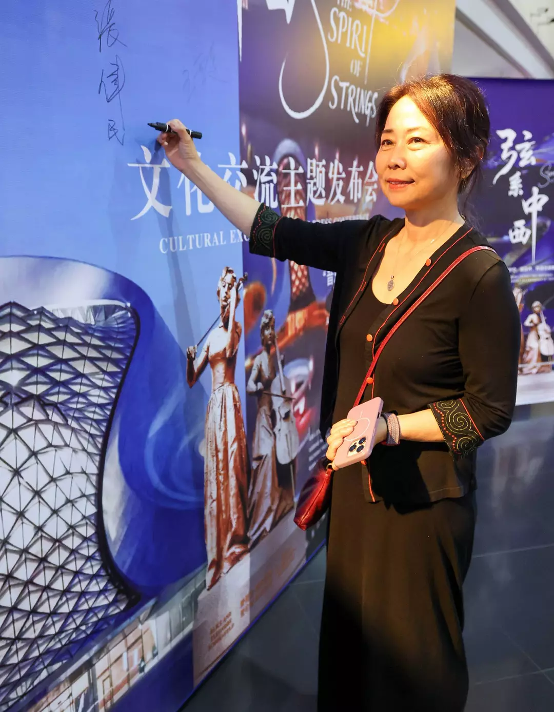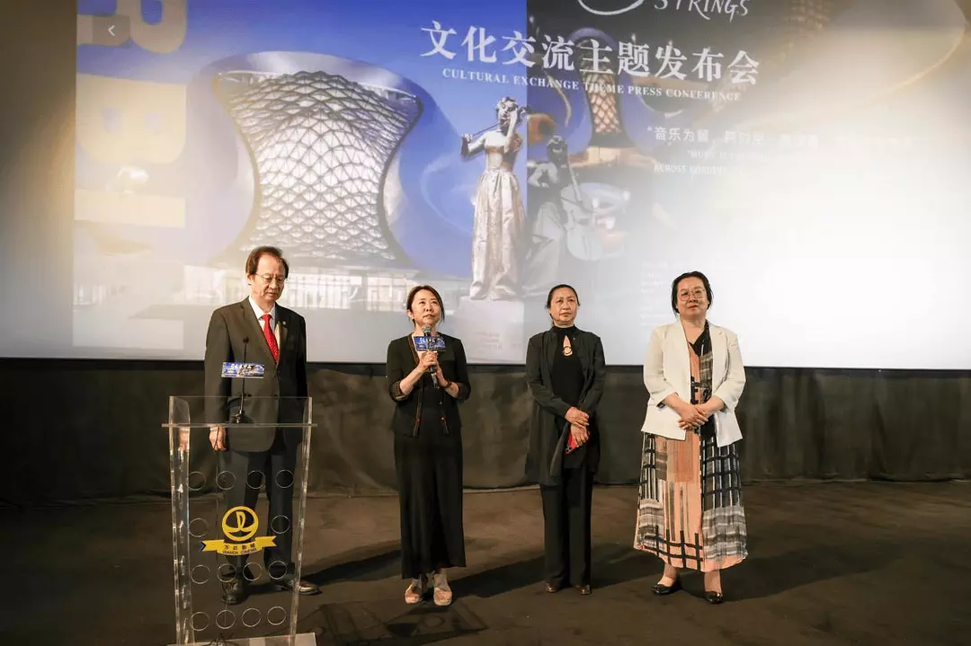 小提琴家、艺术总监薛苏里先生,执行制片齐滨英女士,以及出品人、黑龙江电影制片厂厂长王雪莲女士先后登台,执行制片齐滨英女士分享了制作团队多年来国内国外拍摄的辛苦和坚守,也恰恰是这份辛苦和坚守,才能成就今天的影片。同时王雪莲女士表示,在全球化浪潮下,文化交流题材影视作品价值非凡。电影《弦系中西》以音乐为切入点,打破文化传播的“隔阂”,未来将通过国际电影节、全球流媒体平台推广,助力中国故事“文化出海” 。
