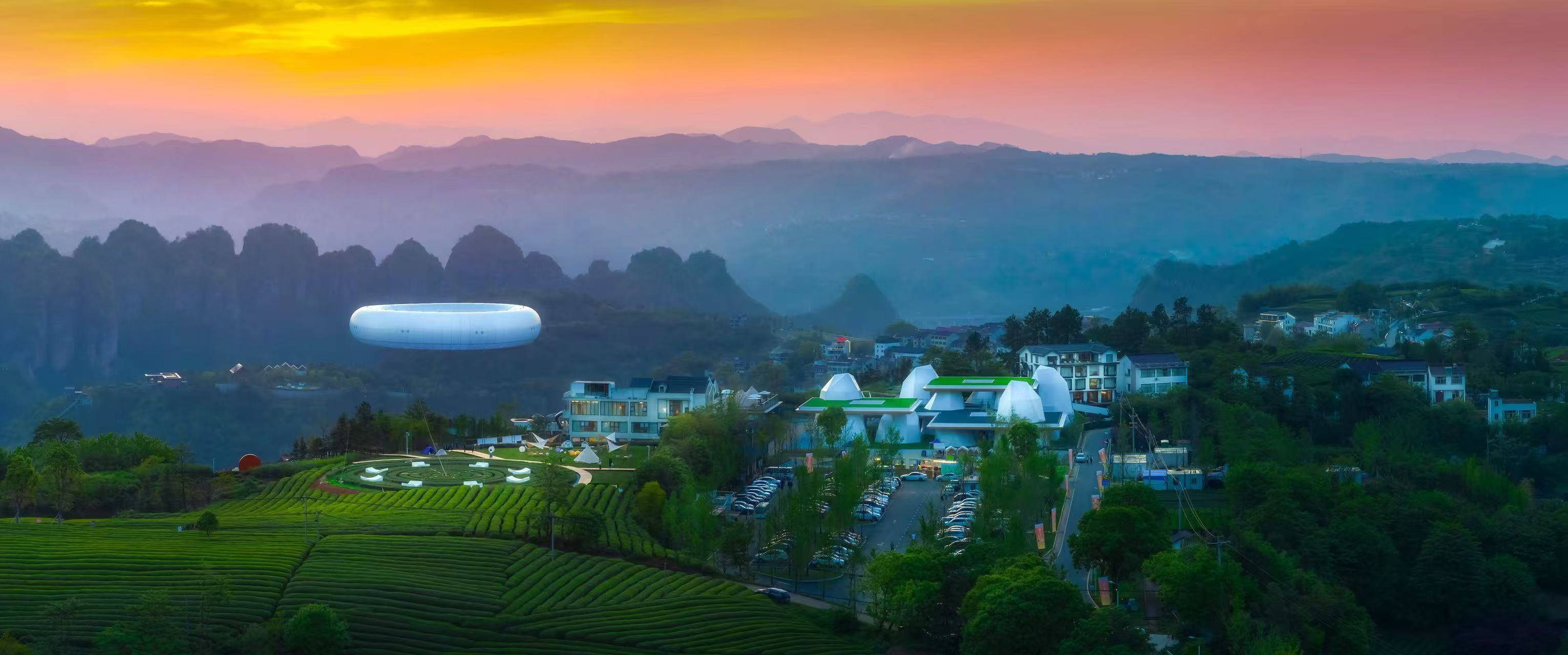 为真实构建“茶山乌托邦”的影像语境,制作团队历经多轮实地勘景,最终选定下岩贝·金山上片区作为故事主场。该片区坐落于新昌县东茗乡西南,与十九峰景区隔江相望,串联下岩贝、金山、后岱山三村,是观云海、游茶乡、听戏品韵、栖居山野的理想之地。近年来,新昌县文旅集团以“出凡尘·入慢乡”为片区发展理念,持续打造自然与人文交融的慢生活示范区,云峰十二重、参差咖啡博物馆、悬崖酒店等多元业态渐次落地,使这里成为越来越多人疗愈身心、安放情绪的向往之地。