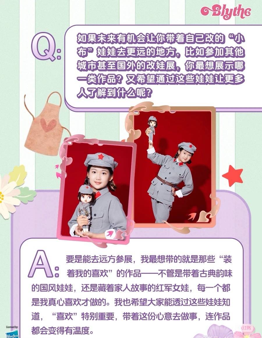 近日,拥有变形金刚、小马宝莉、小猪佩奇等多个知名品牌的美国玩具公司孩之宝旗下的品牌Blythe小布娃娃,专访了在其举办的“东方绮梦”国风茶话会上荣获“改娃区”比赛一等奖的最小改娃师任晴美。