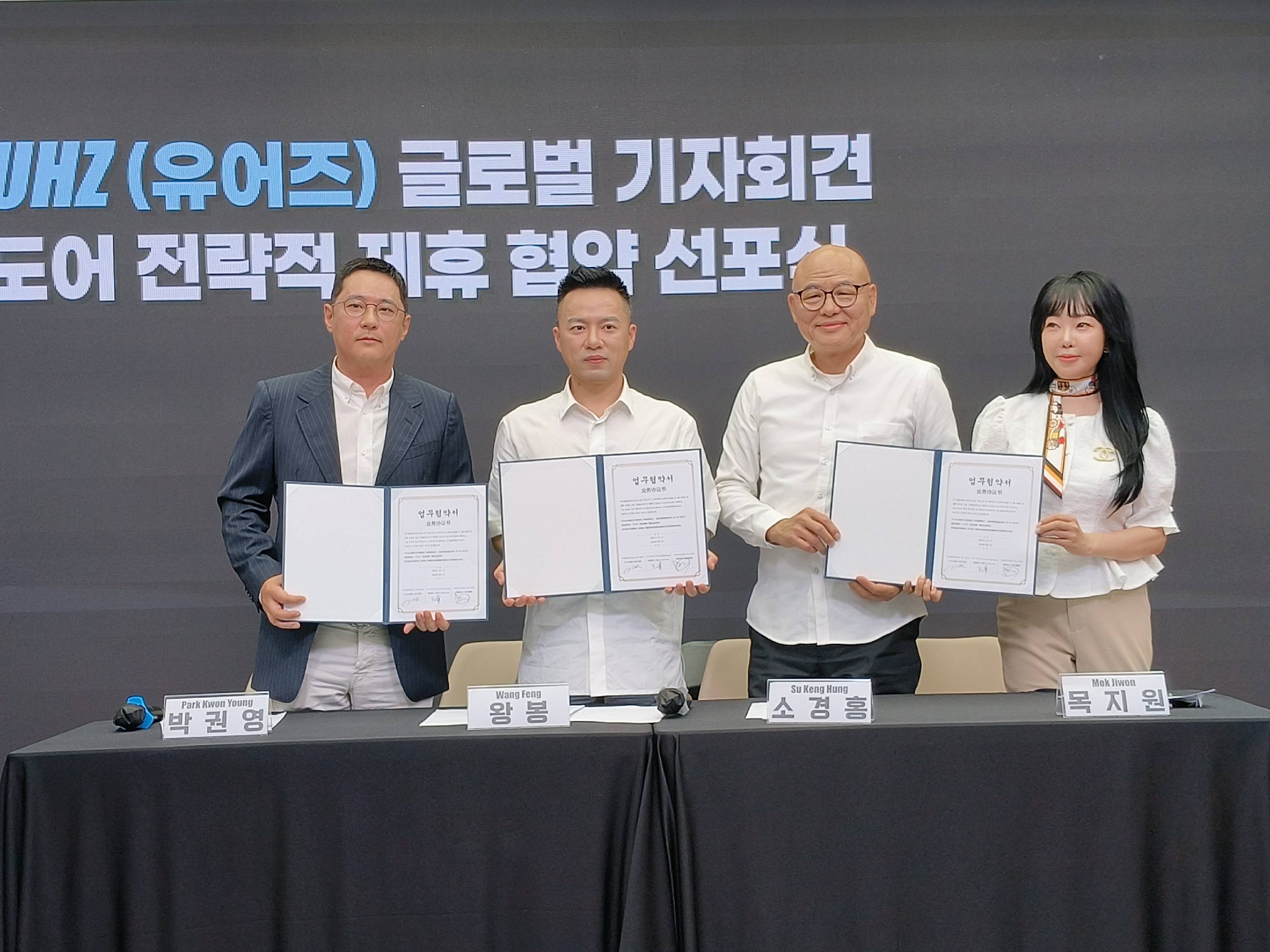 记者会上,韩国娱乐圈核心人士组建的Pinnacle娱乐,与中国大型娱乐企业幸运门公司,为助力YUHZ进军全球市场达成了共识。各位相关负责人:Pinnacle 娱乐朴权英代表、幸运门王峰、苏耿弘、杨文华代表、韩国幸运门(Lucky Gate Korea)睦智媛(Mok Jiwon)代表均到场参加了这一盛大活动。幸运门的代表们在此次发布会上也纷纷表示,从“B: MY BOYZ”启动阶段起,就持续关注,十分看好YUHZ的发展前景与潜力,承诺将以全球市场为目标,为其提供全方位支持。且希望通过本次项目,推动中韩两国文化产业的活跃交流与共同发展。