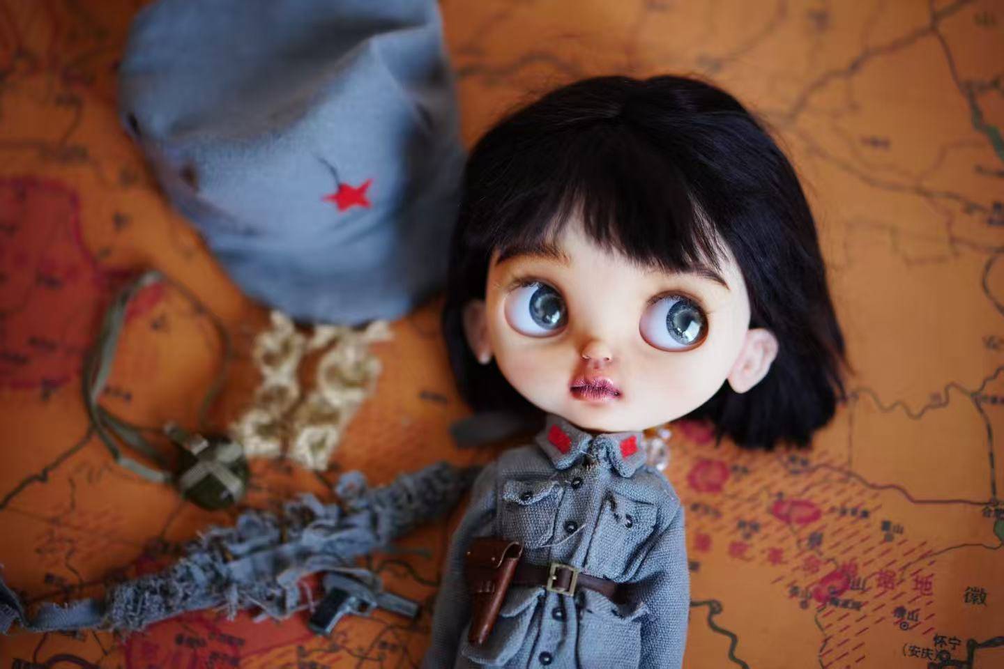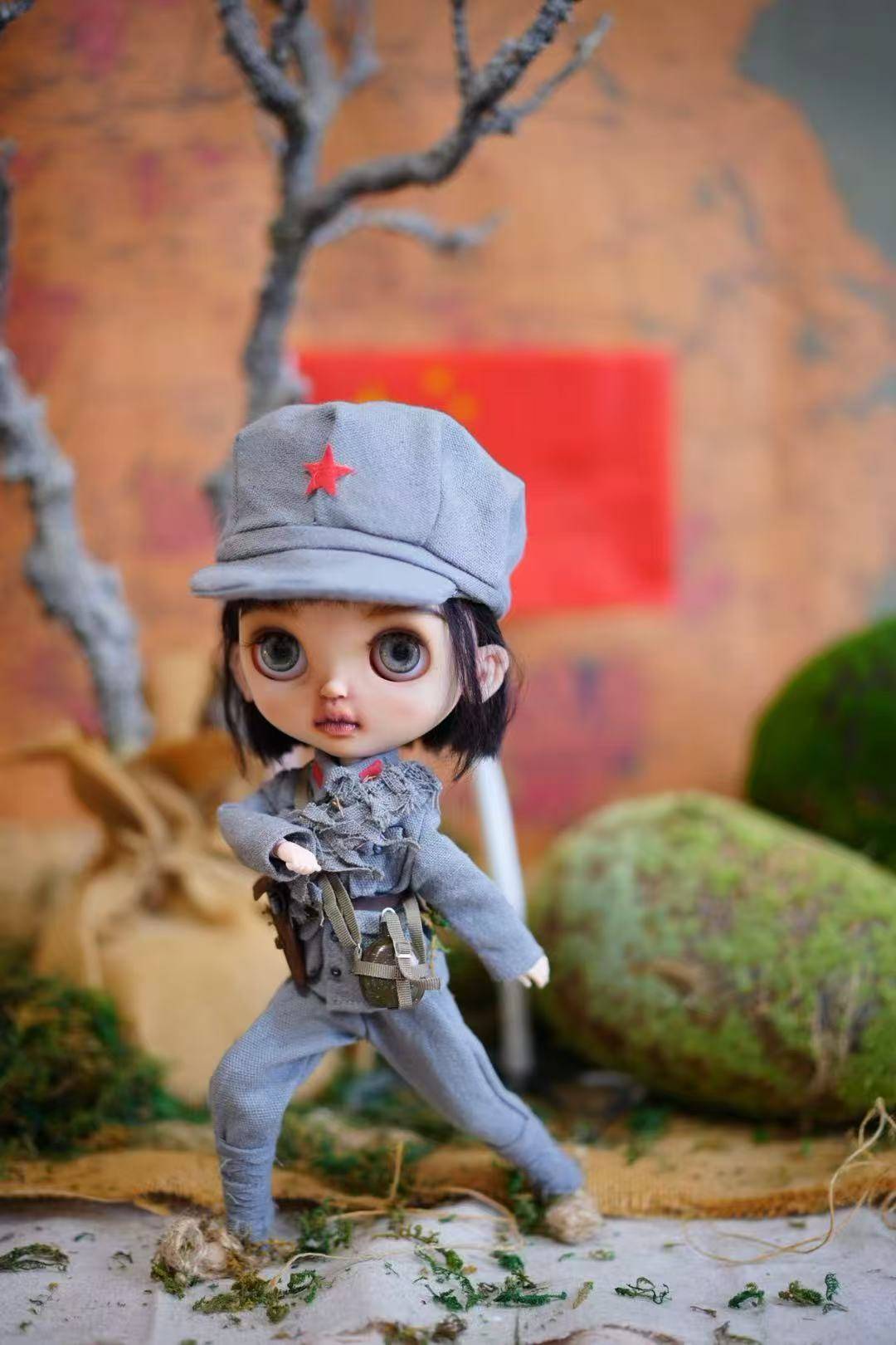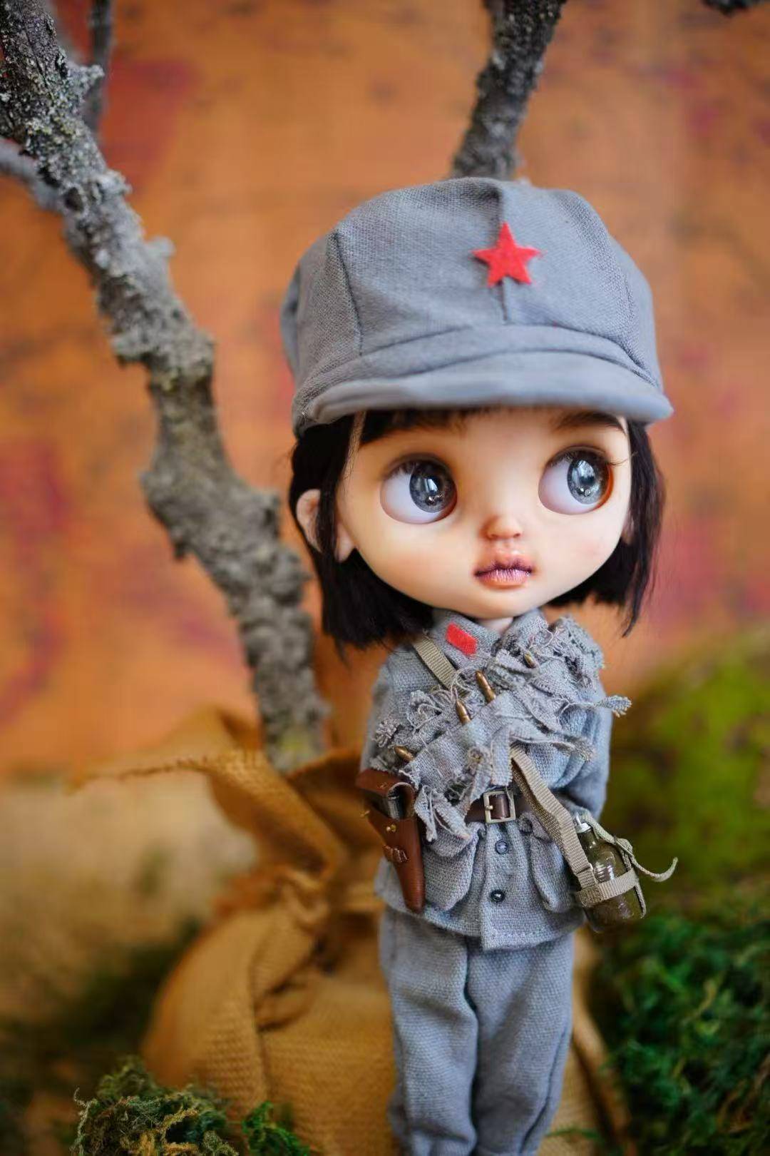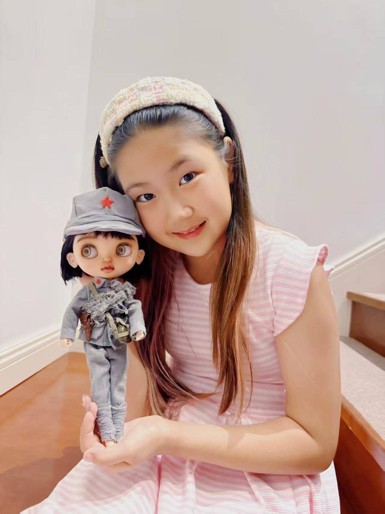 从小生活在这样的家庭环境下,受红色氛围熏陶,任晴美对红军娃娃的情感也更为浓厚,娃娃的衣服都是经过了一番苦心钻研,从颜色到款式以及绑腿草鞋都尽可能还原那个年代最真实的红军军装,由此也制作出了非常特别、美丽,又极具故事感的红军女娃。任晴美小小年纪就对祖国有如此深厚的情感,对红色题材表现出的兴趣与关注,相信也是深受父母、长辈的影响,她将红军主题与blythe娃娃相结合,在改娃届也是相当独特有新意,展现了非凡的天赋,未来可期!望她今后的成长道路如她名字所言,晴空万里,美丽依然!